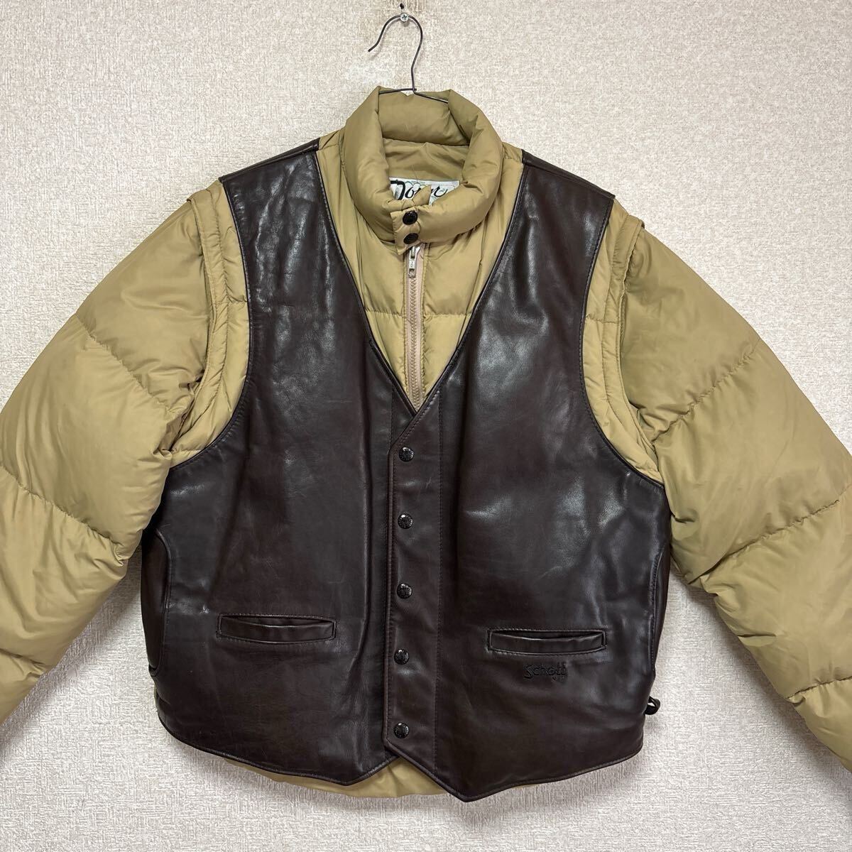 USA製 90s Schott ショット レザーダウンジャケット 2way