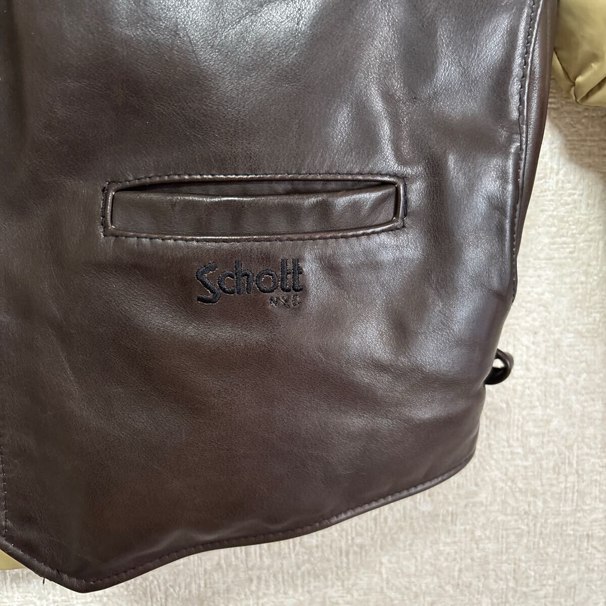 レザーベストのポケットの下には"Schott"の刺繍、レザー部分には本革を使用しています。