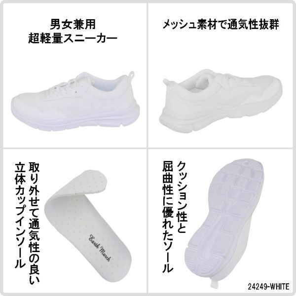 新品 レースアップ スニーカー ホワイト 25.0cm 運動靴 作業靴 軽量 3E 幅広 通学 メッシュ素材 メンズ レディース 男女兼用 em_24249