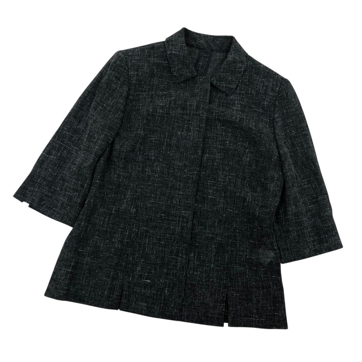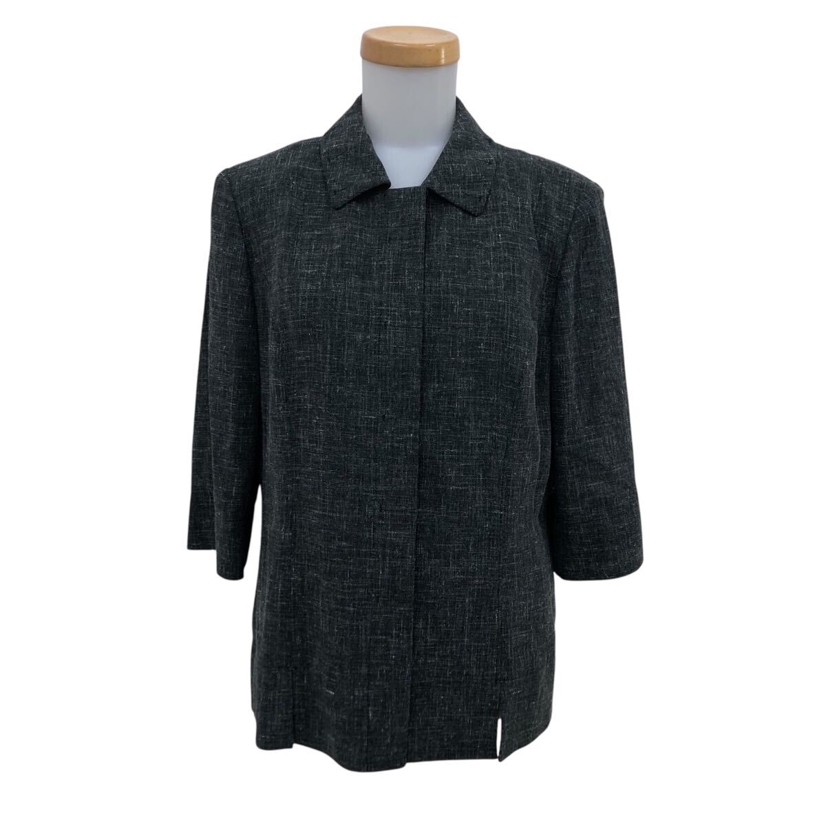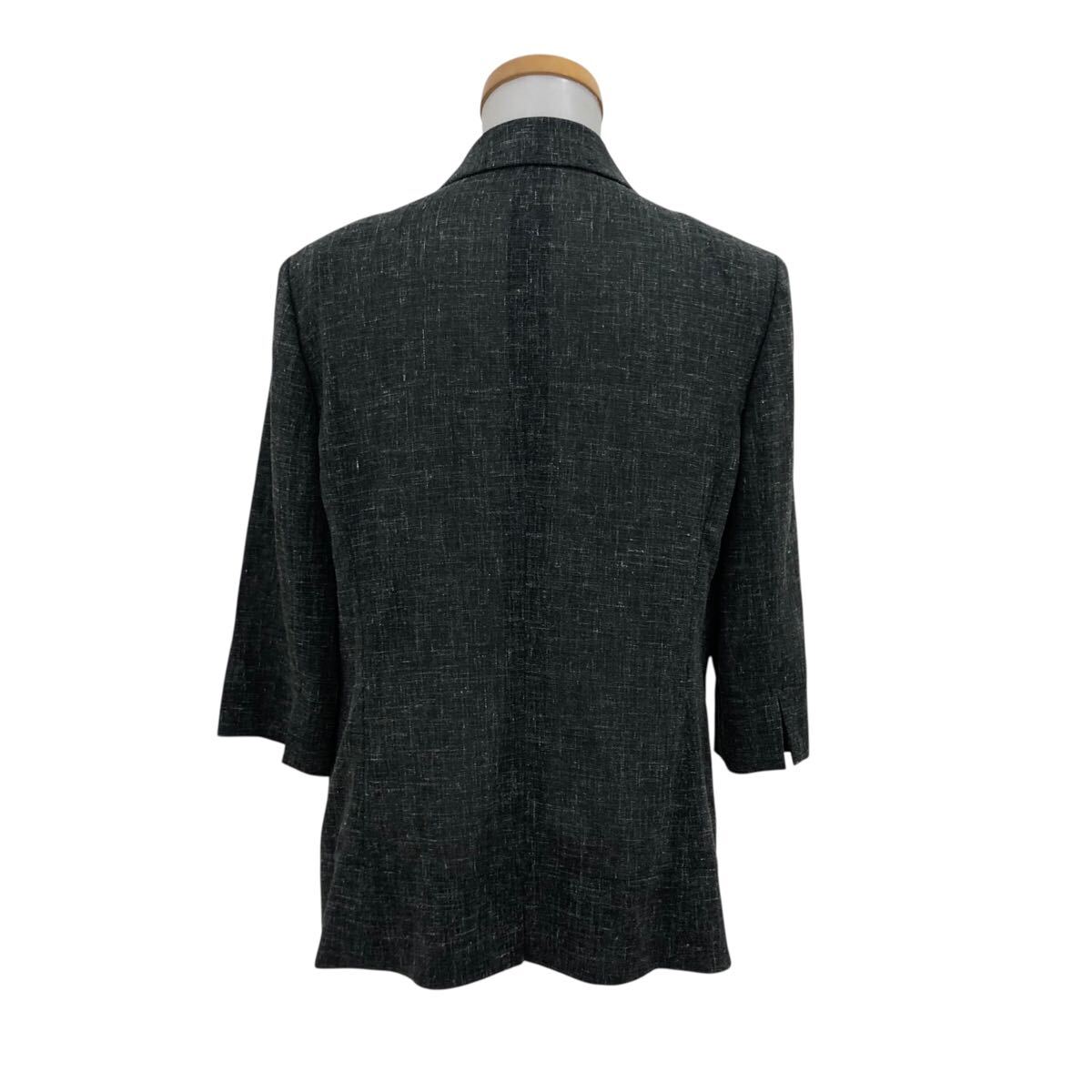 ND294-42 日本製 Leilian レリアン 七分袖 ジャケット 上着 羽織り トップス グレー系 毛67% 麻20% ナイロン13% レディース 11
