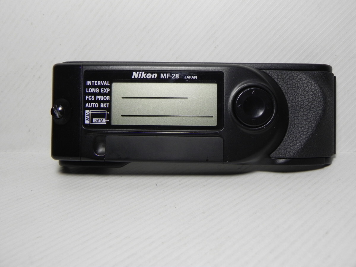 ●Nikon マルチコントロ-ルバックMF-28(F5用)(821)。仕様:機能は、各種データ写し込みおよびデータ表示機能、露出を段階的に変化させて連続撮影ができるオートブラケティング機能、最長999時間までの長時間露出撮影ができるバルブ機能、いずれのフォーカスモードでもフォーカス優先の撮影が可能なフォーカスプライオリティ機能、設定した時刻から一定時間ごとに設定した回数の撮影の繰り返しが可能なインターバルタイマー機能などがあります。 設定はMF-28の各種ボタンとカメラ側コマンドダイヤルで行います。 品物の外観には多少スレ、傷があり、商品の通電、取り付け確認済です、液晶の表示は正常です、商品の印字等は未確認です、中古品です。付属品は御座いません、本体のみです。