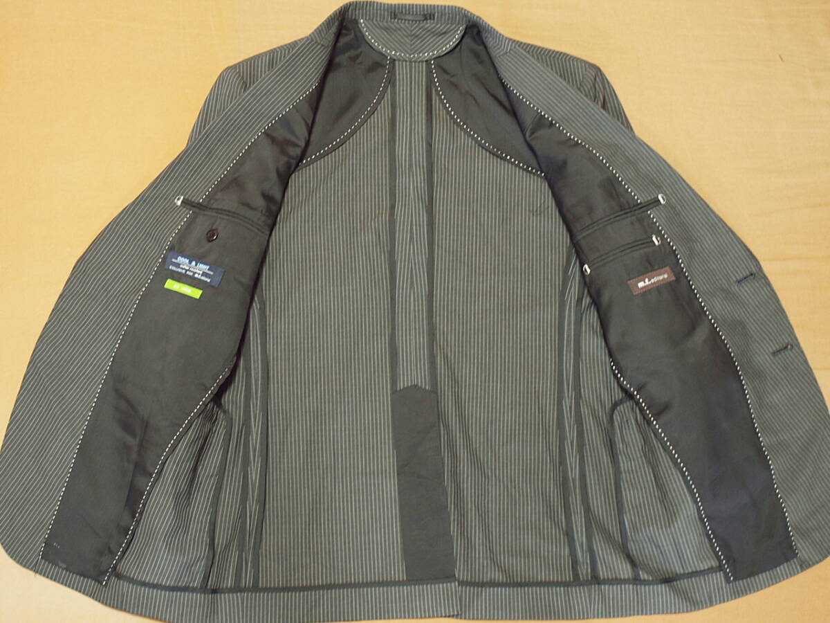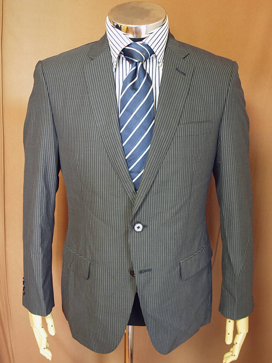濃グレーxピンストライプ柄2ボタン細身スーツ(AB4)夏より春夏物セットアップ