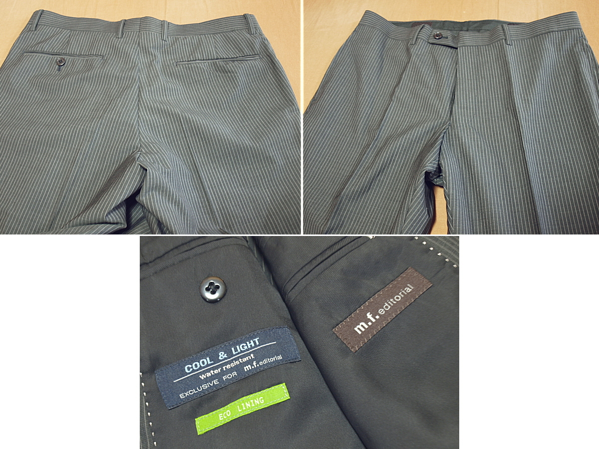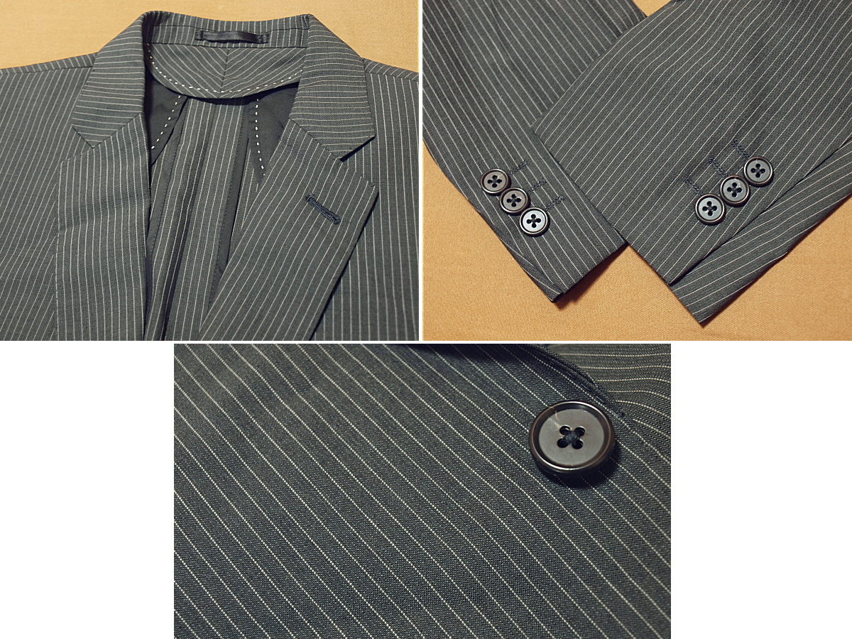 色は濃いグレーにピンストライプ柄が入った色柄です。