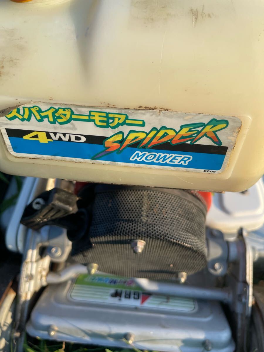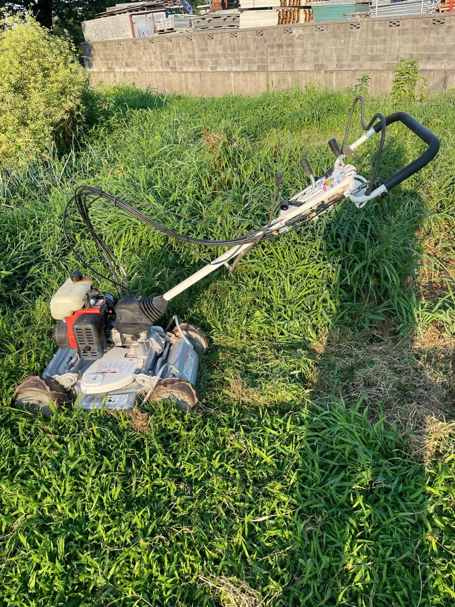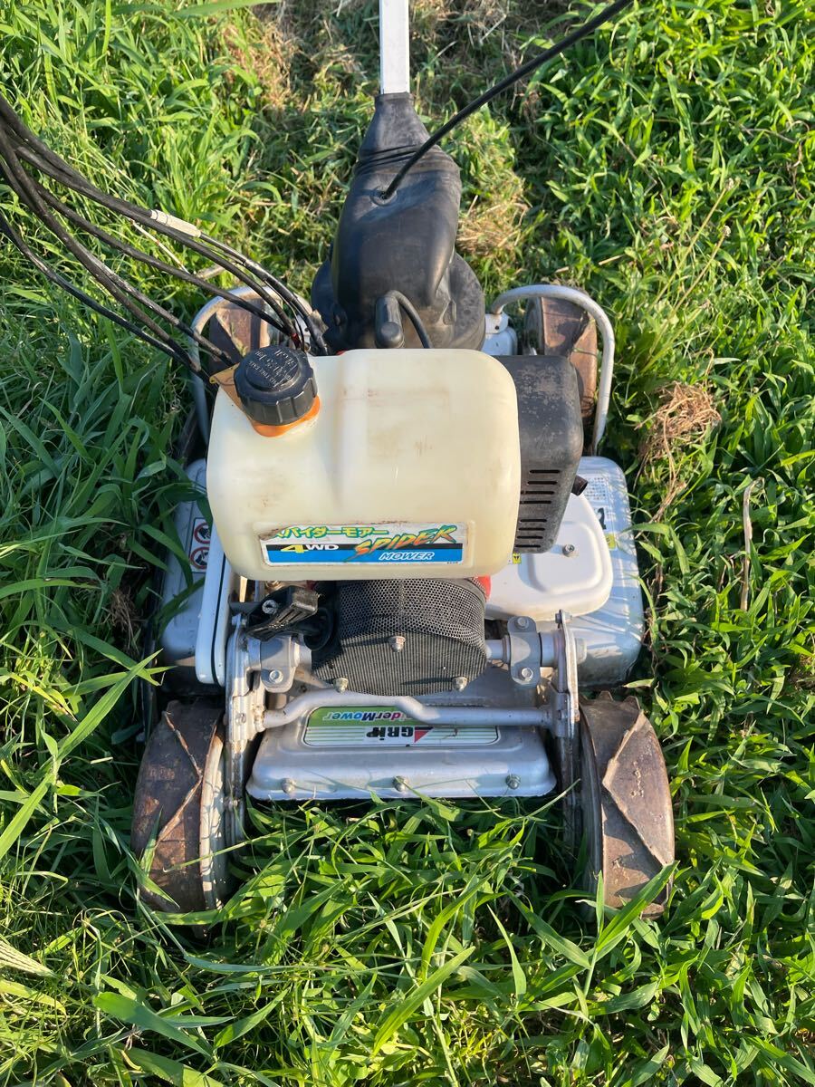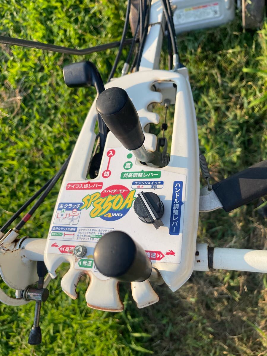 中古品、ハンドル上下左右回転、高さ調整、エンジン始動,前進1.2速,後進1.2速 ,刃の回転、草刈確認しました、草刈良好です、車輪やチェーンケースなど動き良好で穴がありません、現状渡し、傷、汚れ、錆などがあります、ご了承の上に入札をお願いします。 ※動画確認はこちら: オーレック スパイダーモア SP850A自走式草刈機
