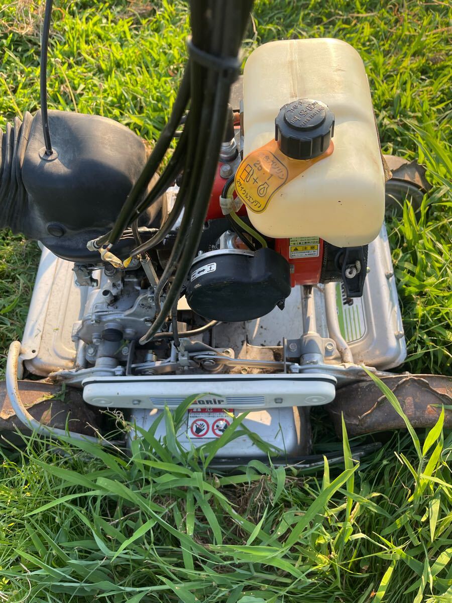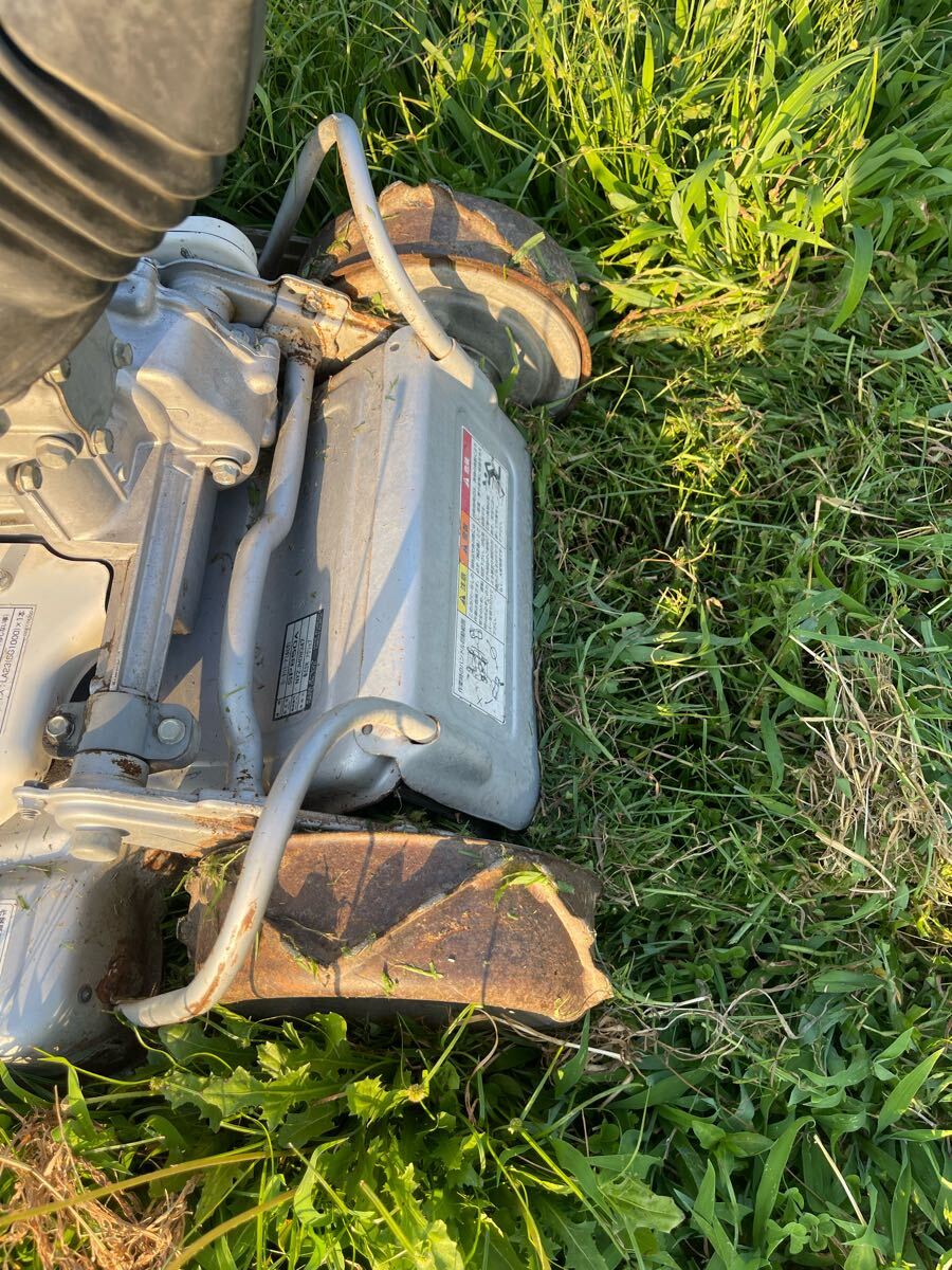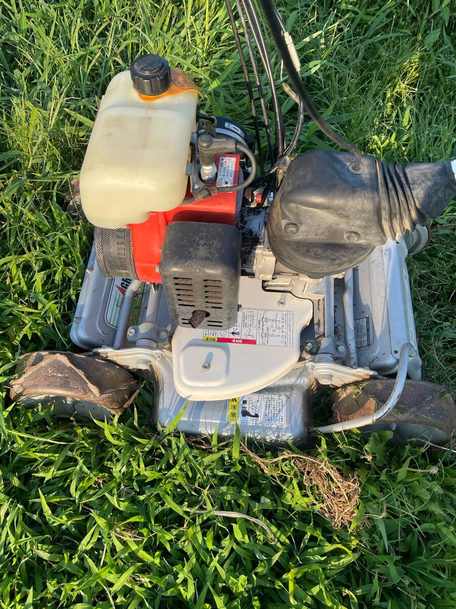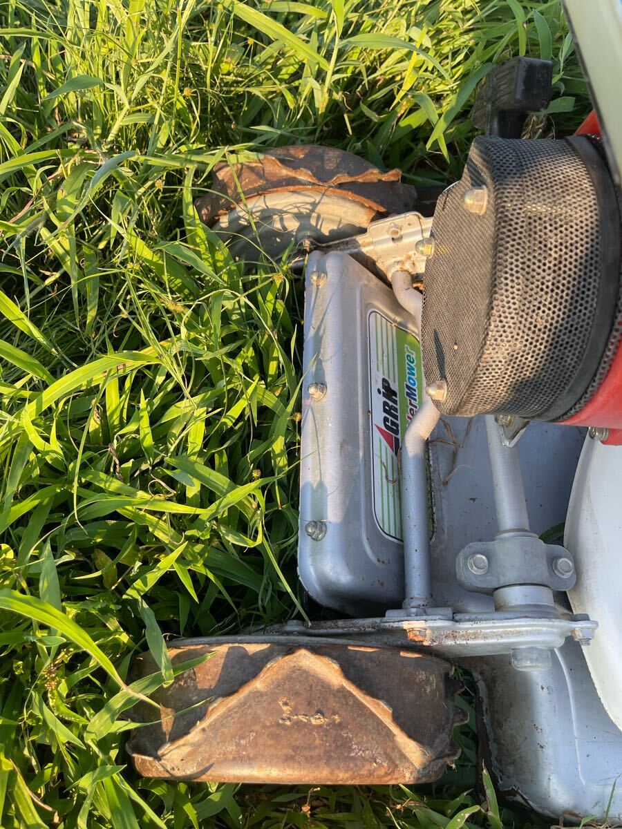 中古品、ハンドル上下左右回転、高さ調整、エンジン始動,前進1.2速,後進1.2速 ,刃の回転、草刈確認しました、草刈良好です、車輪やチェーンケースなど動き良好で穴がありません、現状渡し、傷、汚れ、錆などがあります、ご了承の上に入札をお願いします。 ※動画確認はこちら: オーレック スパイダーモア SP850A自走式草刈機