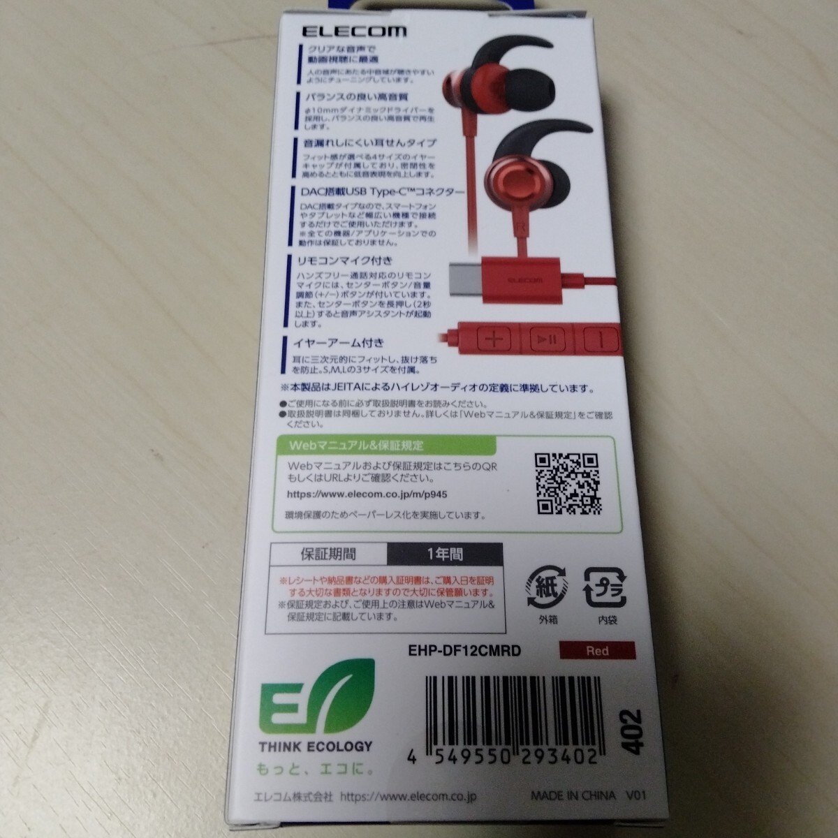 ◇ELECOM 有線イヤホン デジタル式 USB Type-C ヘッドホン カナル 10mm レッド EHP-DF12CMRD