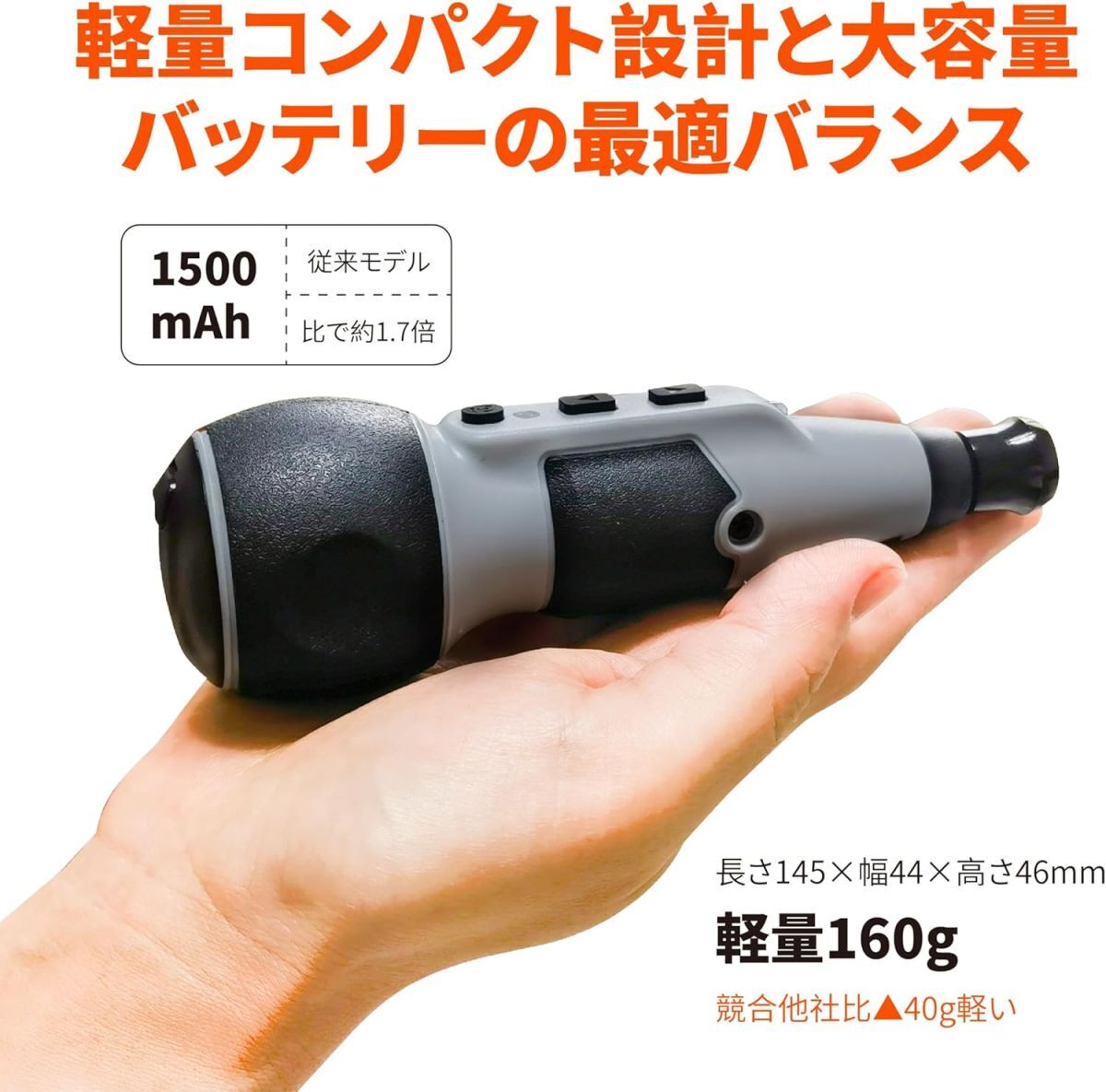 • 【2025新改良】大容量1500mAhバッテリー搭載:従来モデル(900mAh)比で約1.7倍の長時間駆動を実現!最新のType Cポートで高速充電可能、スマホと共用ケーブルで便利、フル充電後は約60分使用可能(※無負荷状態)。