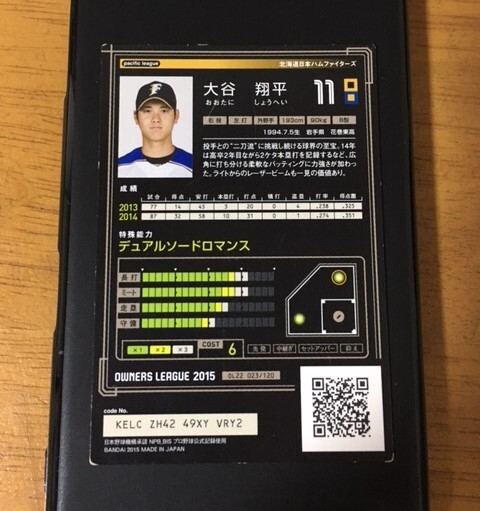 2015 プロ野球 OL22 オーナーズリーグ STAR 大谷翔平 サイン入り