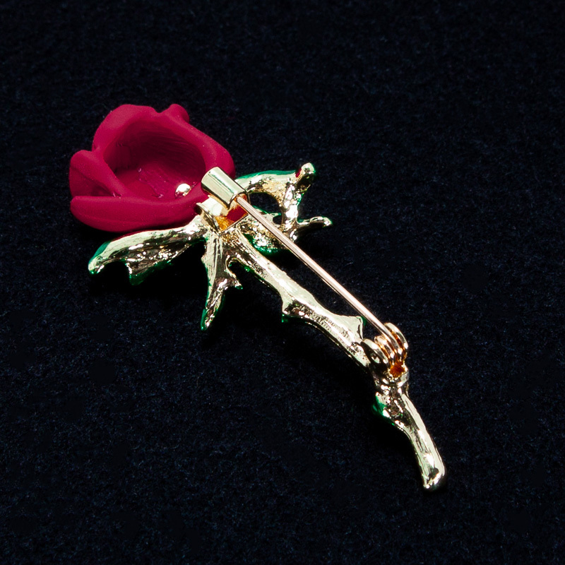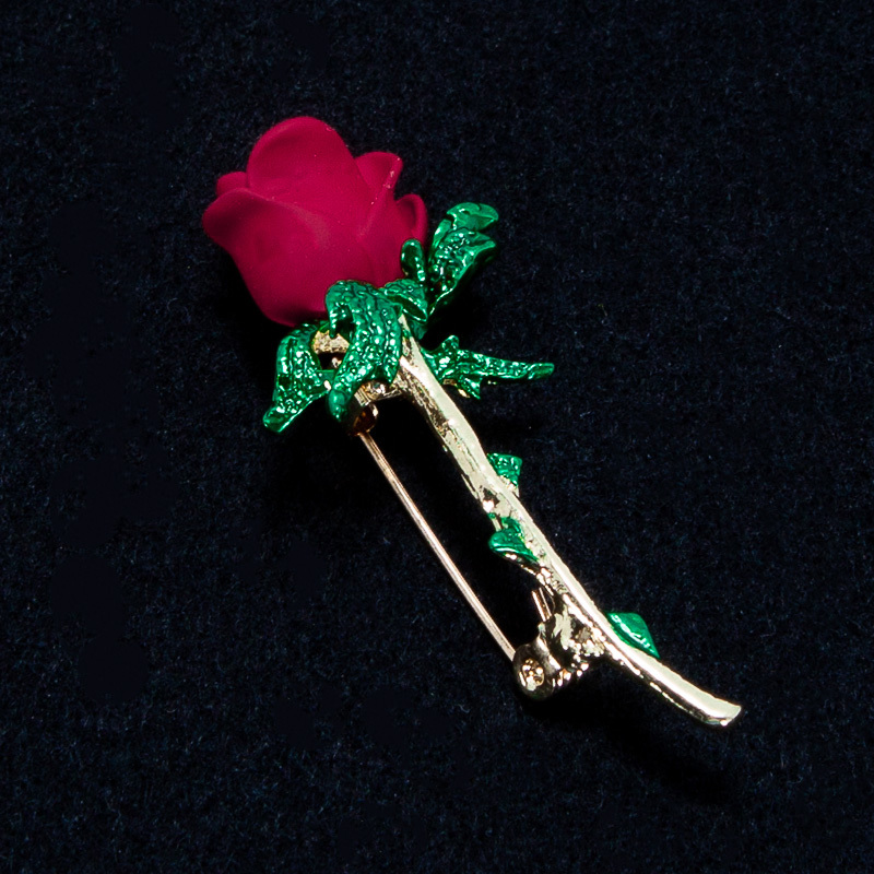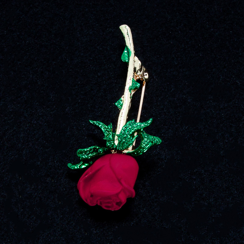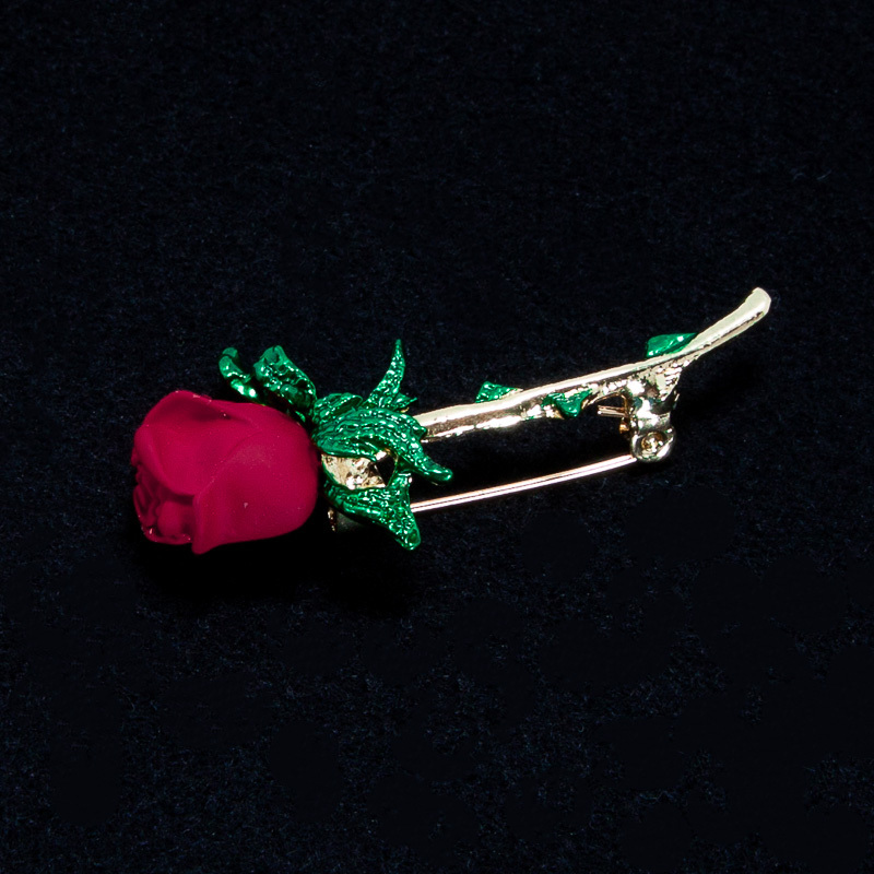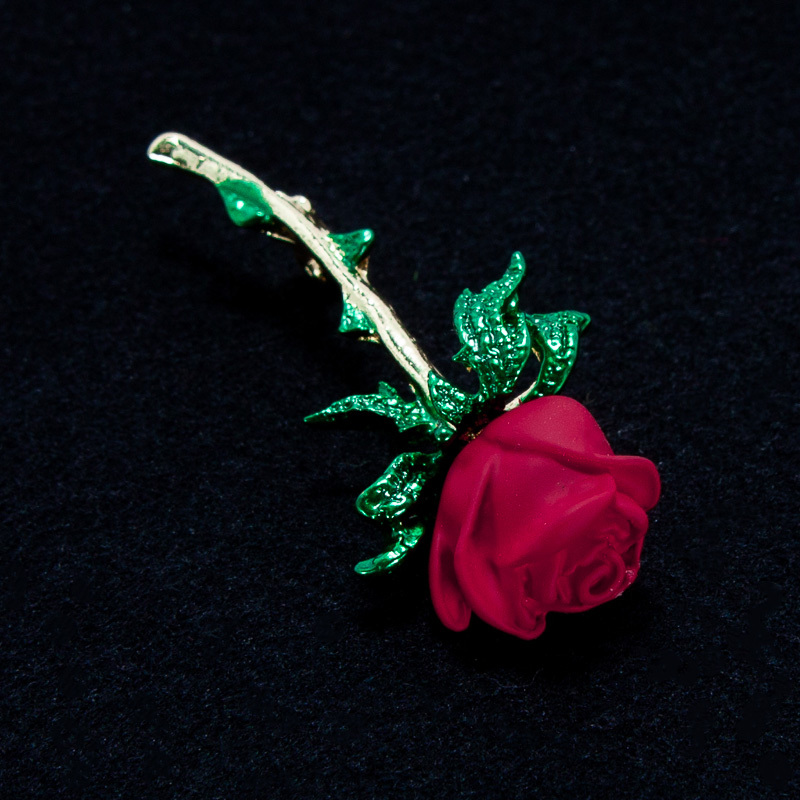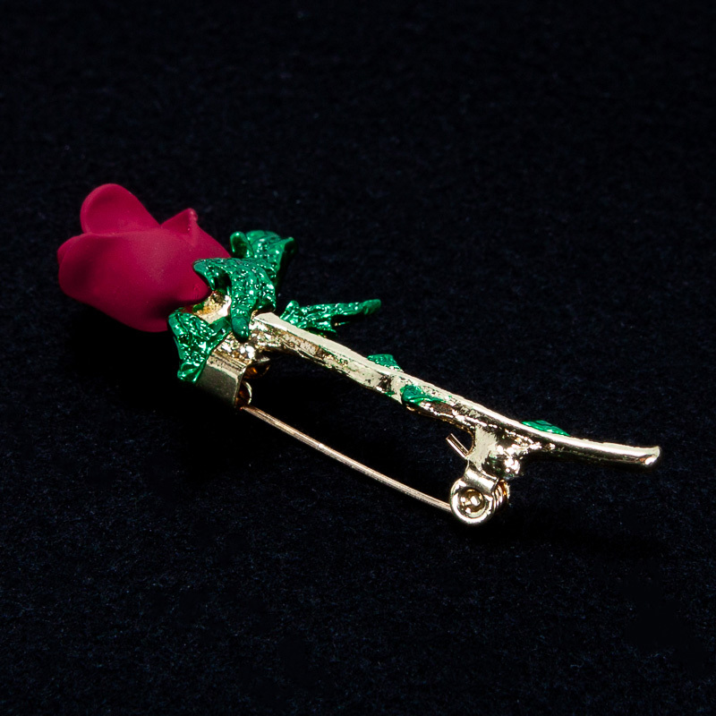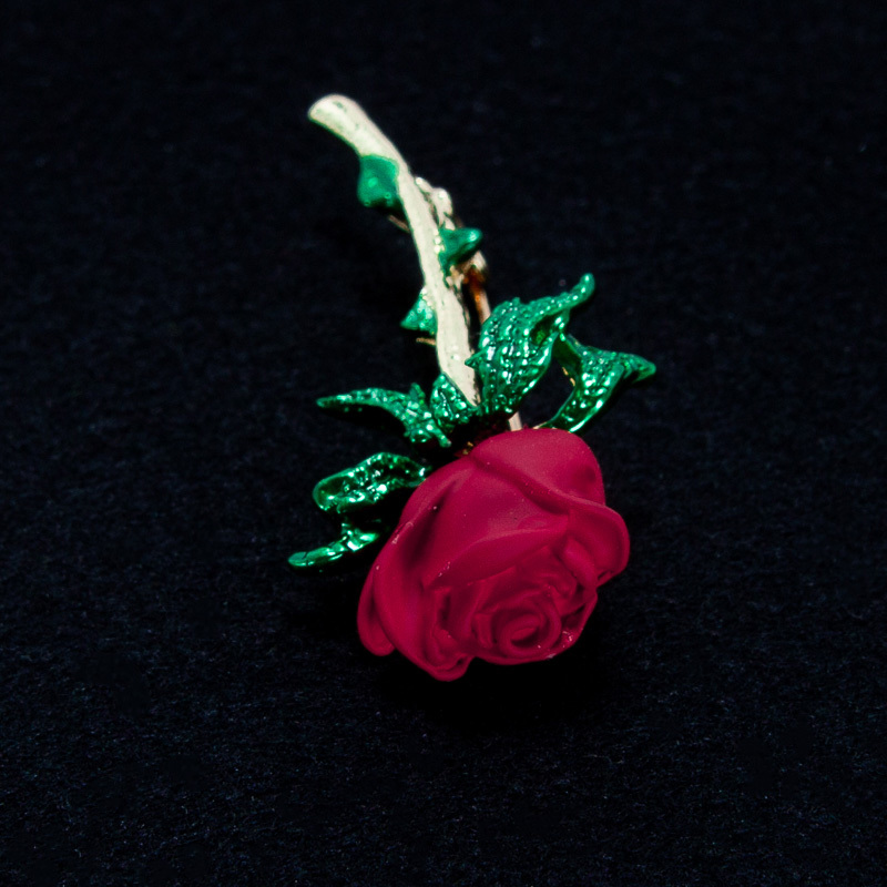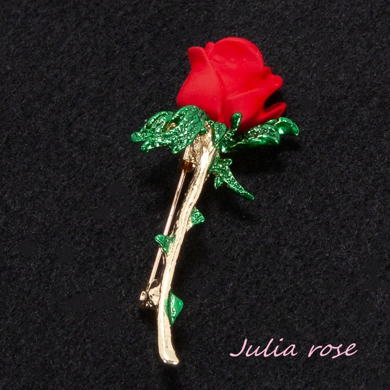 一輪の赤い薔薇のブローチ シンプル バラ 胸元・襟元等 ブローチ 一輪の赤いバラ 新品