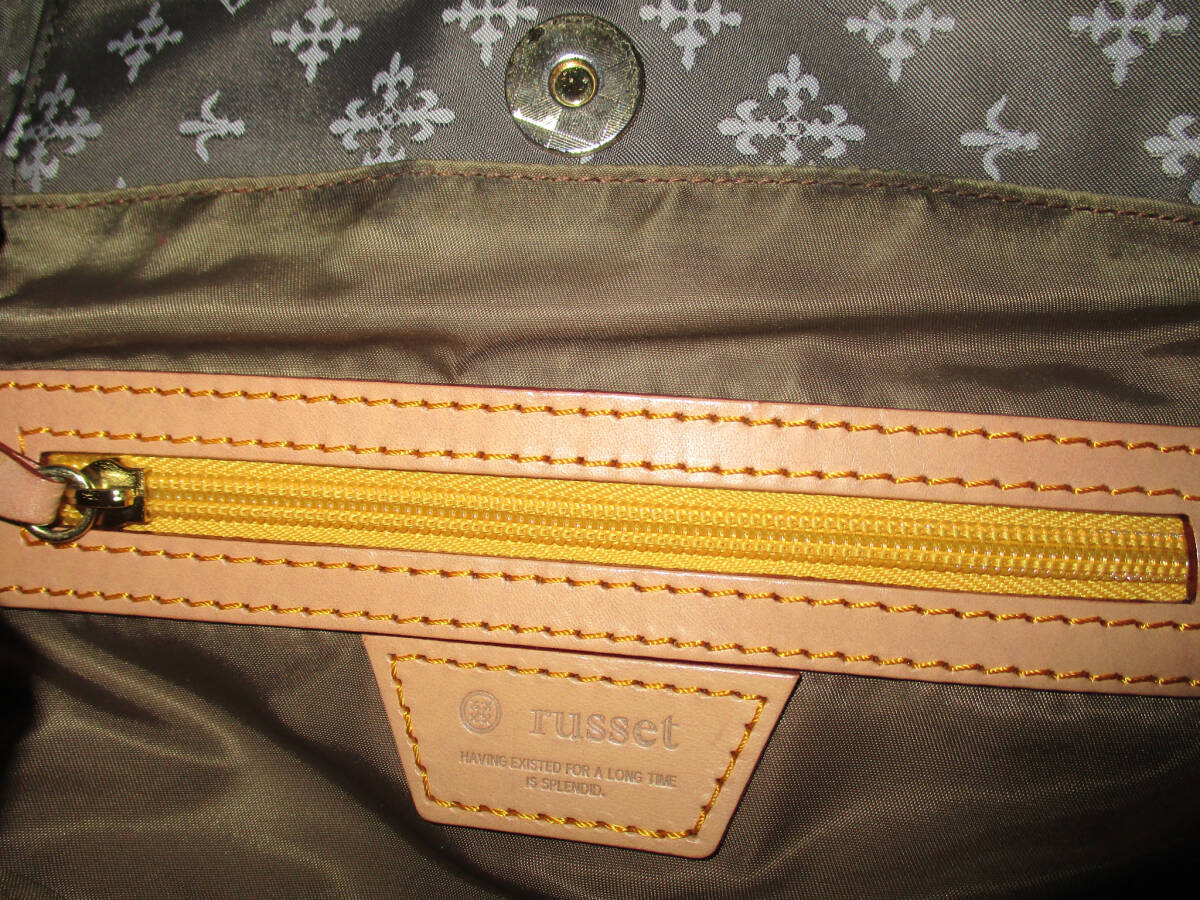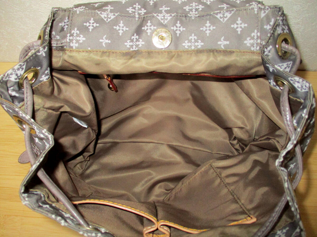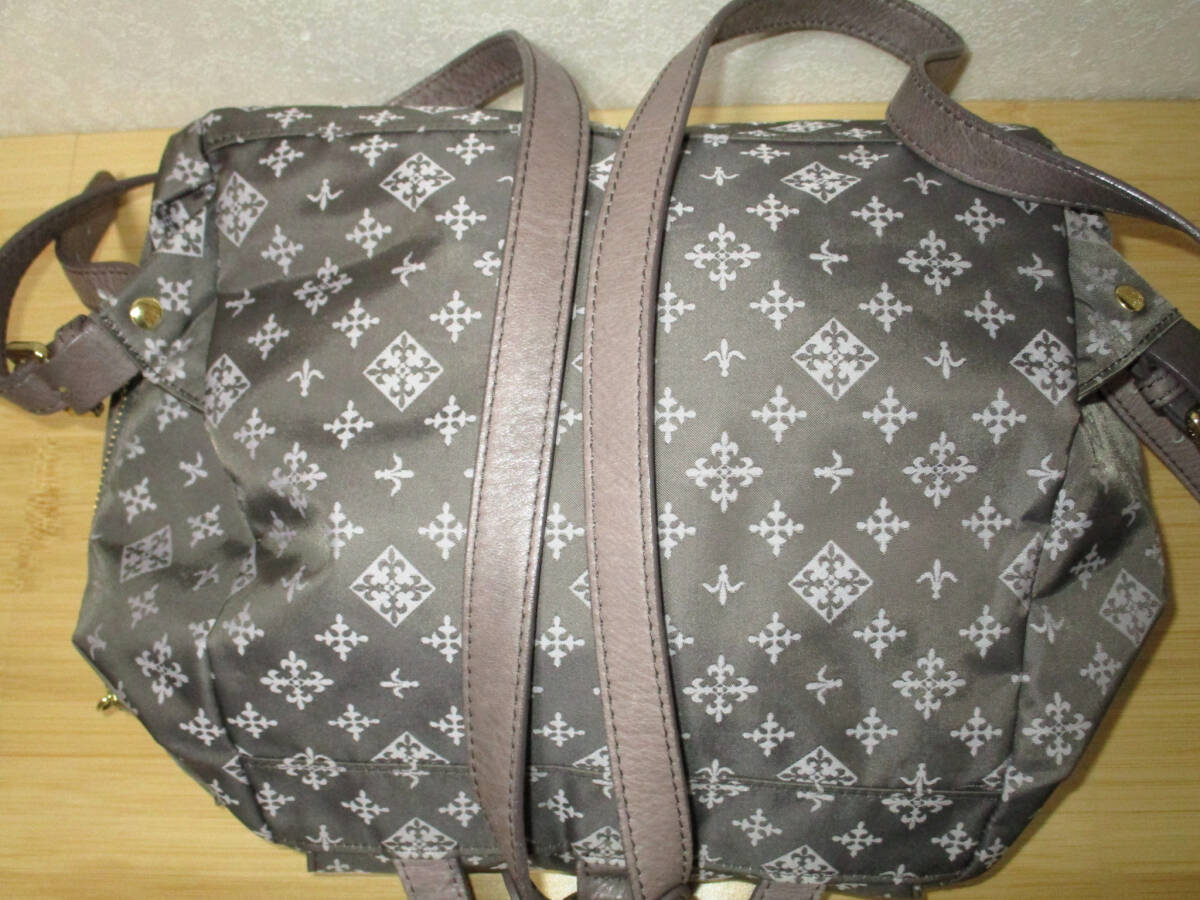 ラシット russet レザー使用モノグラム柄 リュック ミニ グレー系 です。 素材はナイロン系×本革です。色はグレー系です。色は画像でご判断ください。。