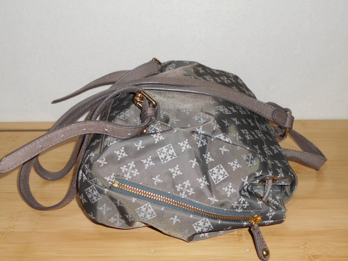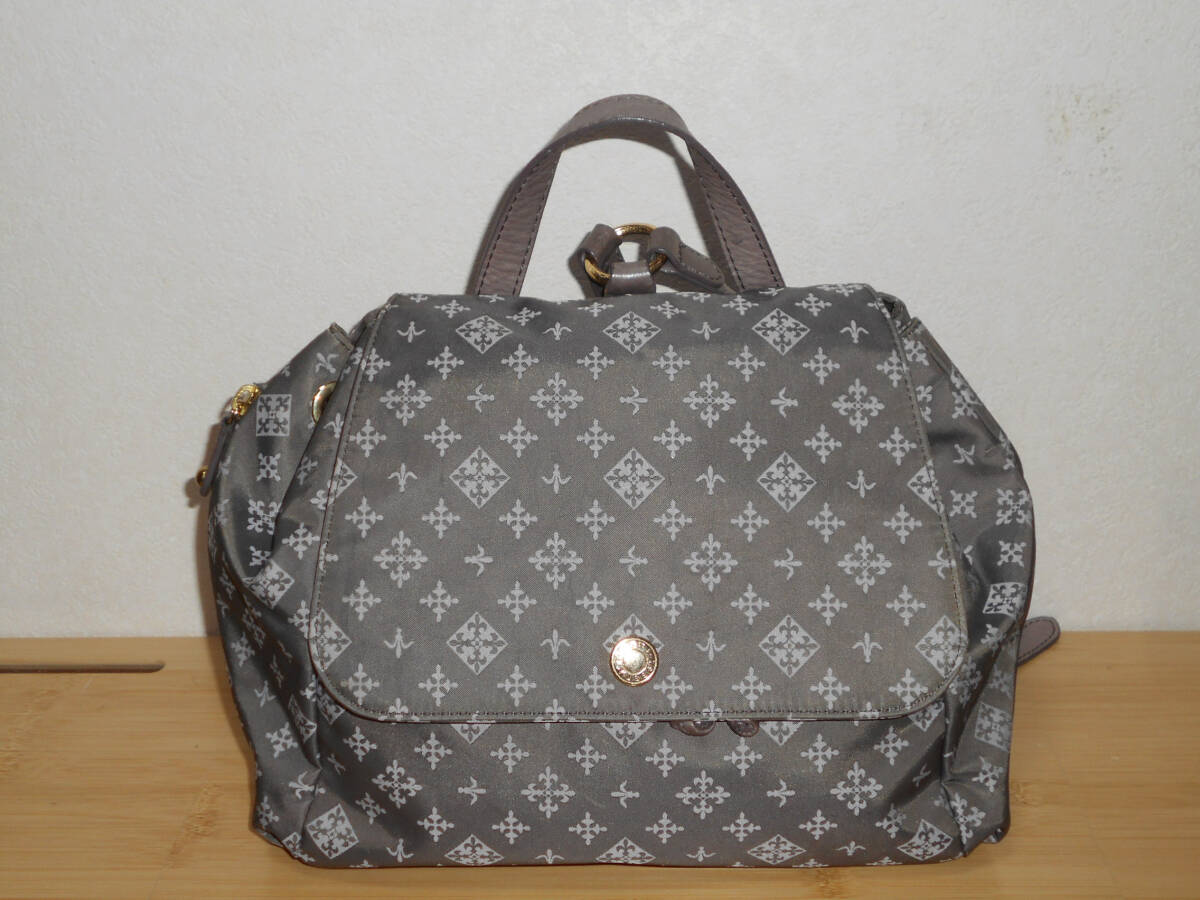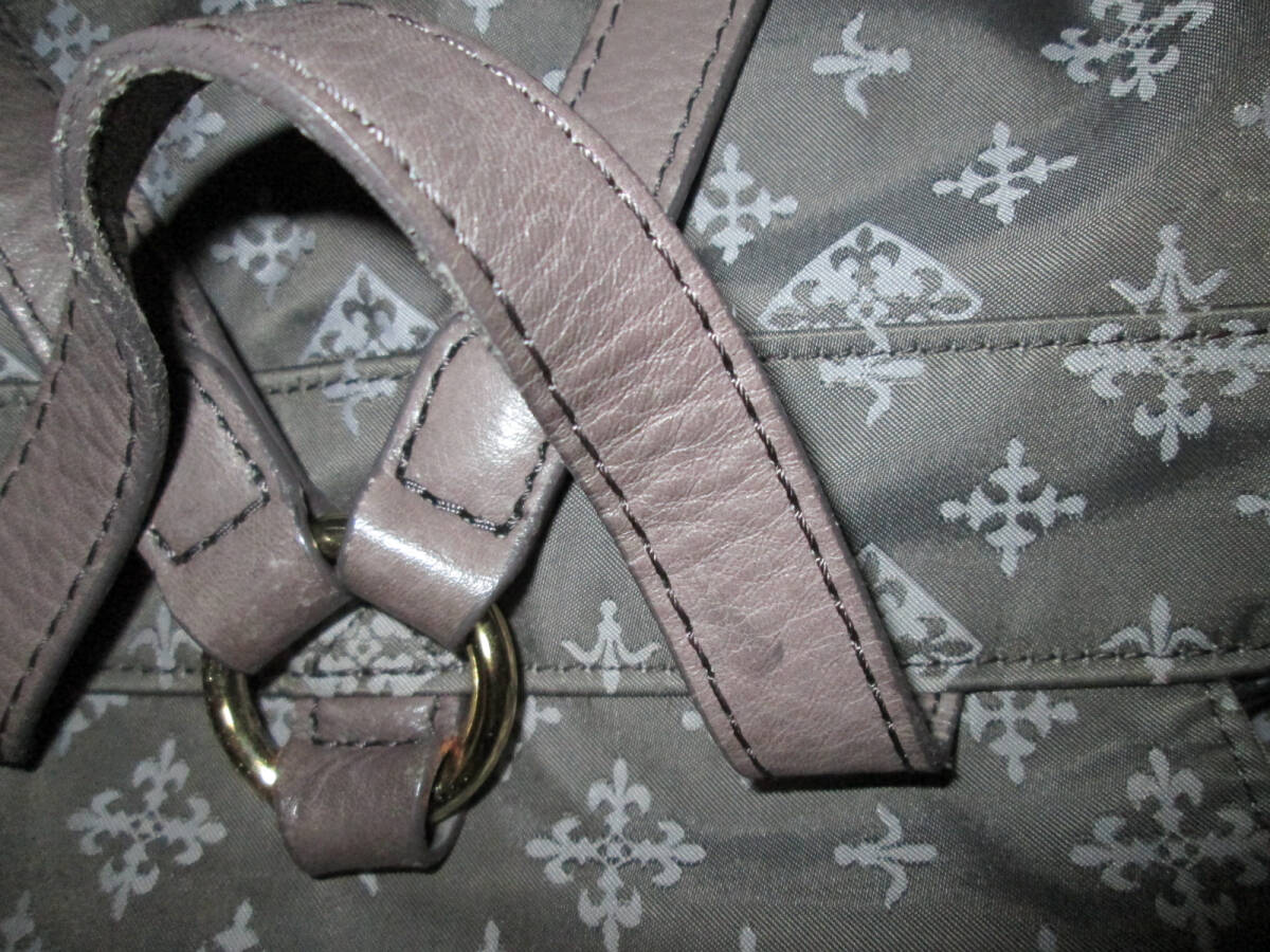 ラシット russet レザー使用モノグラム柄 リュック ミニ グレー系 です。 素材はナイロン系×本革です。色はグレー系です。色は画像でご判断ください。。
