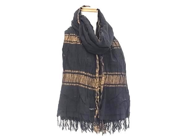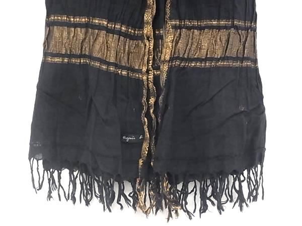 agnes b. アニエスベー コットン×メタリックヤーン フリンジ ストール ショール レディース ブラック系×ブロンズ系 DE9062