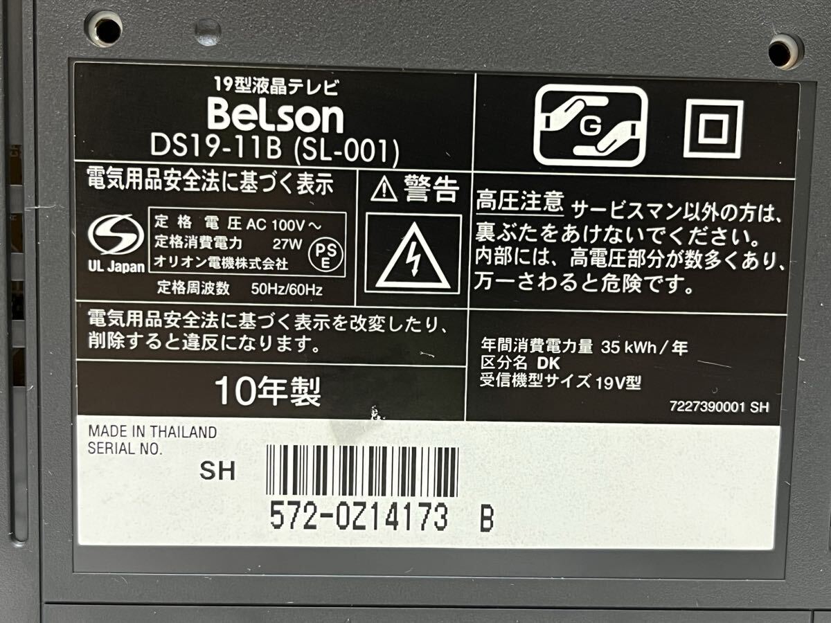 RE6597 Belson 液晶テレビ 19インチ DS19-11B (SL- 001) リモコン欠品 10年製 現状品 0731