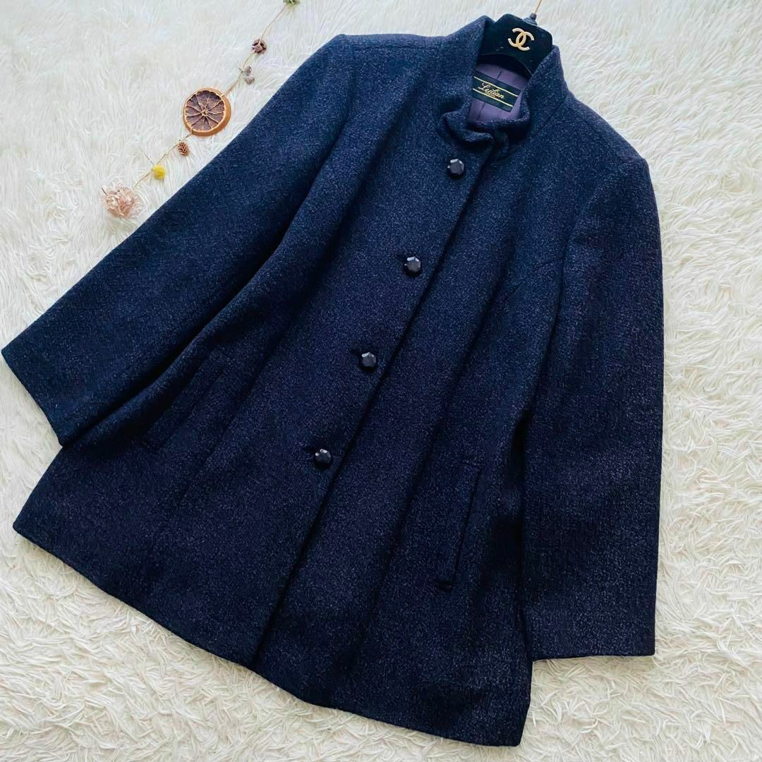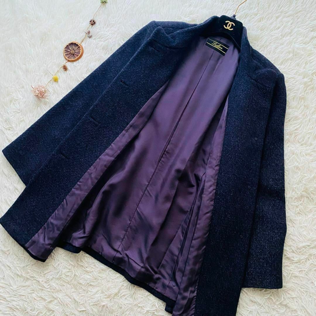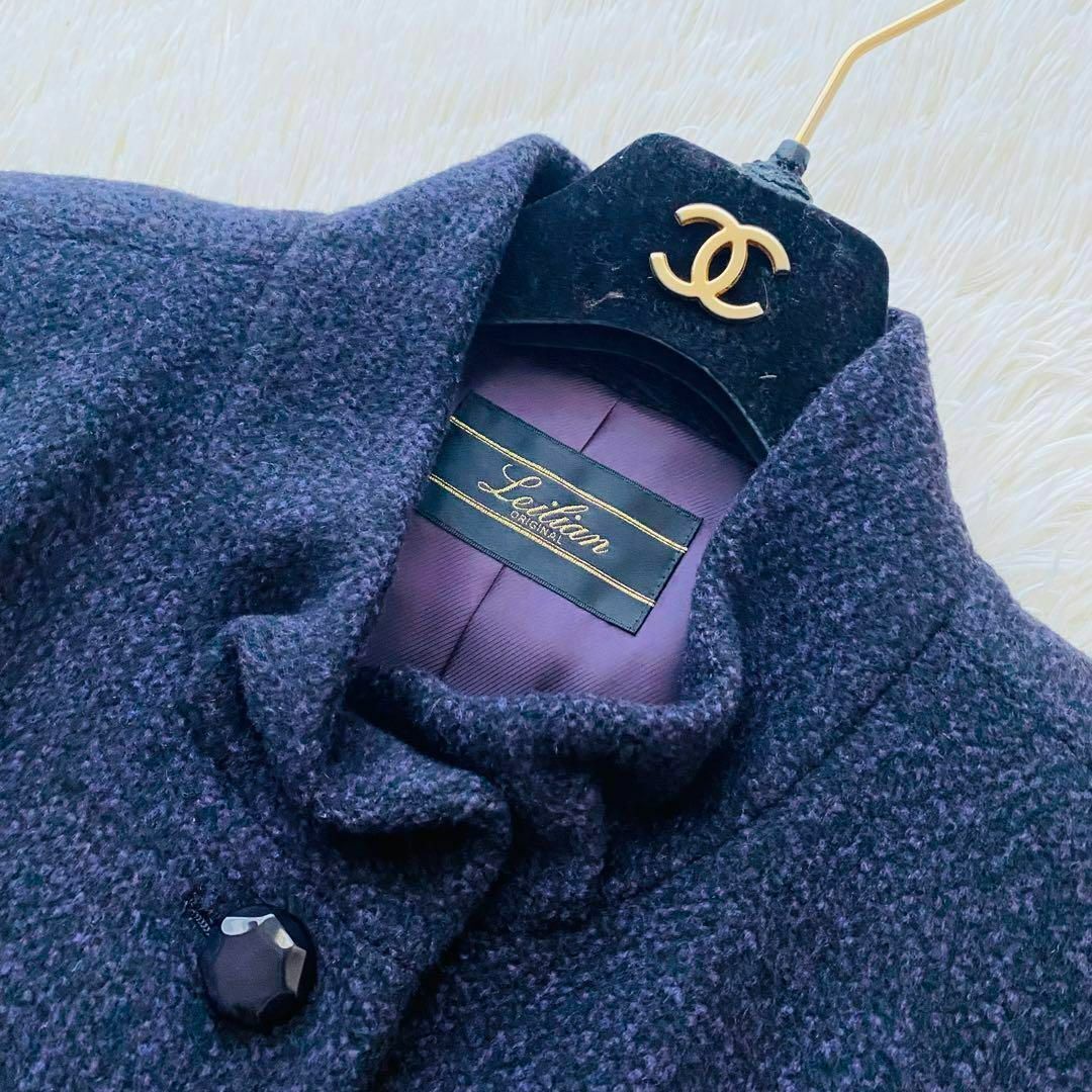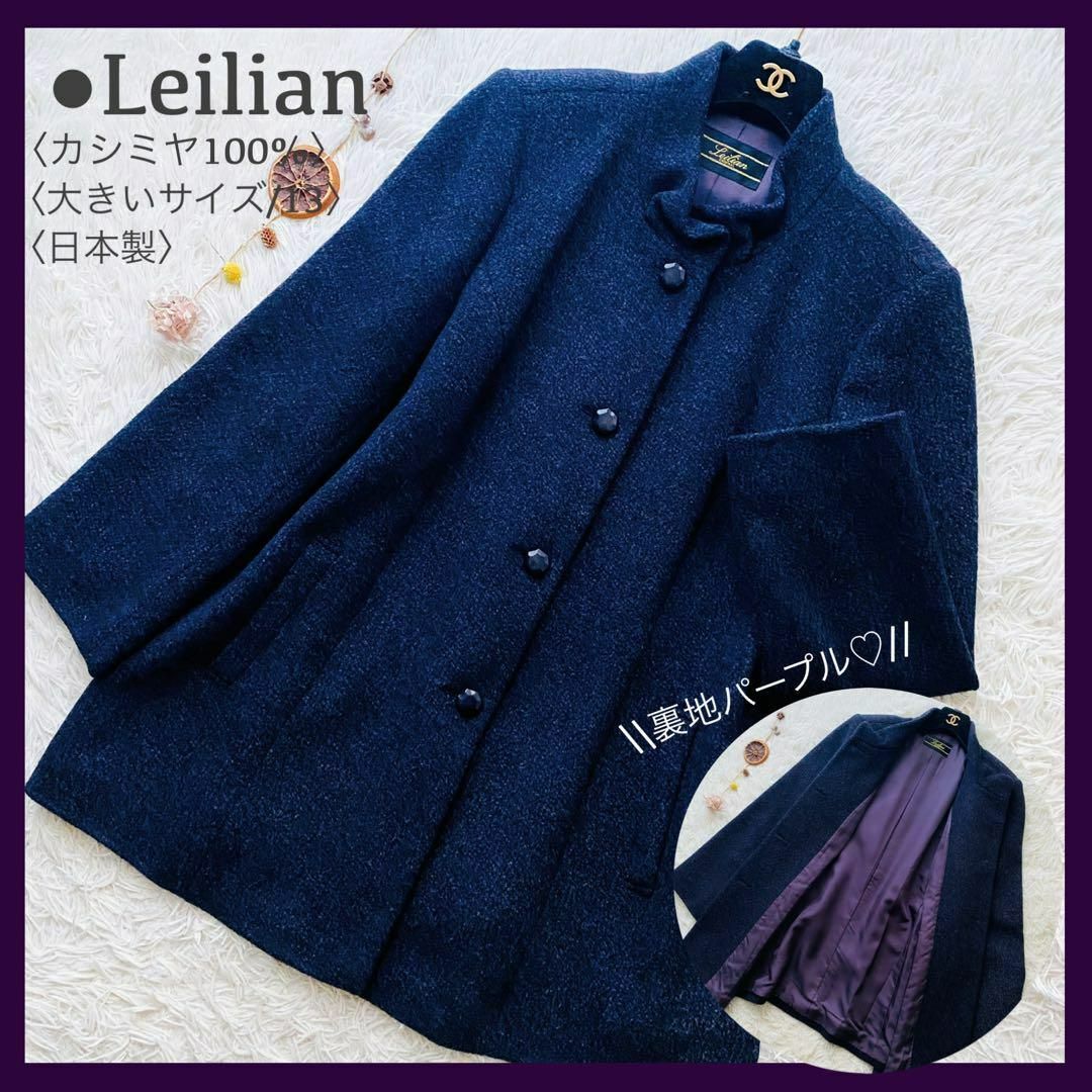 Leilian レリアン カシミヤ100% ツイード パープル ポンチョ風 フレアコート アウター 日本製 大きいサイズ