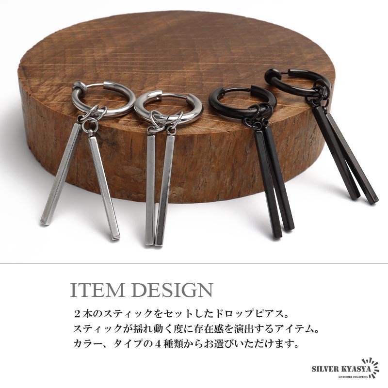 2本のスティックをセットしたドロップピアス。スティックが揺れ動く度に存在感を演出するアイテム。カラー、タイプの4種類からお選びいただけます。