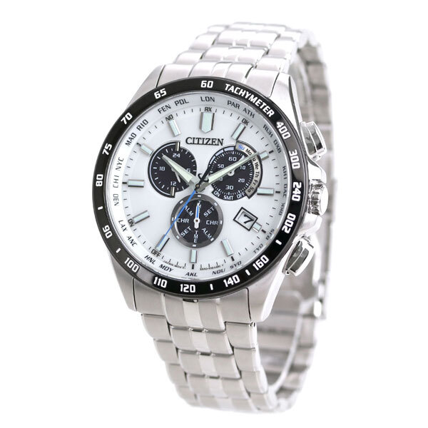 | 仕様 | 日常生活用強化防水(10気圧) 平均月差±15秒(非受信時) 駆動期間:フル充電時約3年可動(パワーセーブ作動時) パーペチュアルカレンダー クロノグラフ(60秒・60分計) タキメーター 24時間表示 ワールドタイム機能(24都市) 日中米欧電波受信 受信局自動選択機能 定時受信機能 強制受信機能 サマータイム機能 充電量表示機能 充電警告機能 過充電防止機能 パワーセーブ機能 アラーム 夜光(針・インデックス) |