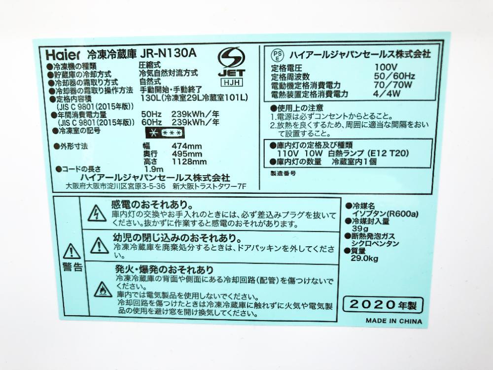 ★引き取りの大歓迎!! ご本人様が直接引取の場合、2,000円値引きます!! 是非お越しください♪ ★お取り置きOK!★ 3ヶ月間までは、無料でお取り置きできます! もしそれ以上の期間をご希望の方は、事前にご相談ください♪ ◆送料無料★2020年製★ 中古★Haier/ハイアール 130L 2ドア冷凍冷蔵庫 右開き 置き場所を選ばないスリムボディ【◆JR-N130A-W】◆B63 ※棚・ポケットなど、写真に写しているものが全てです。 ◆冷蔵庫に関して、動作確認は、しっかり長時間(2~3日間)行っており、冷えも良好で問題ございません。 ◆他に多数出品しており掲載写真をご覧いただければわかりますが、 細かすぎるかもしれませんが、私が気が付いたキズ等に関して、できる限りアップ写真を掲載しております。 こちらの商品に関しては、私が見る限りで申し訳ございませんが、多少のキズ等ありますが、気になるほどでもなく、全体的には、超美品だと思いますが、中古品の為、キズ・汚れ等あると思って頂き、気になる方はご遠慮ください。是非、ご検討をお願い致します。 【商品説明】 ◎置き場所を選ばないスリムボディ ・幅474mm、奥行き495mmで圧迫感のないスリムボディなので、ワンルームでもお洒落に決まります。 ◎耐熱性能天板 ・電子レンジが載せられるので、お部屋がすっきりします。 ※上板耐荷重30kgまで、電子レンジのタイプによって置けない場合があります。 ◎高さ調節可能トレイ ・重いものを載せてもたわまない「強化ガラストレイ」で、冷蔵庫は入れるものによって棚の位置が変えられます。 ◎すっきりポケット ・下段は2Lペットボトル3本、中段は500mlペットボトルや1L紙パック飲料が収納可能。 ※ペットボトル、紙パック飲料の形状により、収納できない場合があります。 ■スペック■ ドア開閉タイプ右開き ドア数2ドア 定格内容積(総容積)130L 冷蔵室容量101L 冷凍室容量29L 冷蔵室位置下段 冷凍室位置上段 独立製氷室無 自動製氷無 年間消費電力量239kWh/年 1年間の目安電気料金6450円 省エネ目標年度2021 省エネ達成率100% 省エネ性能 多段階評価点2 幅474mm 奥行き495mm 高さ1128mm 霜取り手動 耐熱トップテーブル有 ※上板耐荷重30kgまで その他●冷蔵室容量:101L ●冷凍室容量:29L ●質量:29kg ●電源電圧:単相100V(50Hz/60Hz共用) ●冷却方式:直冷式 ●霜取方式:冷凍室/手動、冷蔵室/自動 ●庫内灯:白熱灯 ●運転音:25dB ●電源コード:1.9m 2020年製 詳しくはこちら↓ https://www.haier.com/jp/refrigerators/jr-n130a.shtml ◆動作保証しておりますので、商品到着後3日以内に落札後の商品お取引画面から、動作不良等の内容をメッセージ連絡頂きましたら、初期不良対応は致します。但し、電源が入らない、全く稼働しない致命的な不具合に限ります。 ◆簡易清掃を行っております。 当方としては、清掃を行っておりますが、あえて簡易清掃と言わさせていただきます。 神経質な方や、新品同等のレベルをお求めの方、気になる方はご遠慮ください。 ◆その他、素人なりに慎重に確認したつもりですが、中古品の為、私の気づかない傷や汚れ等あるかもしれません。 専門的・神経質な細かな点までの対応はできませんので、基本的にノークレーム・ノーリターンでお願いします。 ※下記内容を最後まで、必ずお読み下さい。 ご入札・落札の際は、ご了承頂いたものとみなします。 注意事項★☆★☆★☆★☆★☆★☆★☆★☆★☆★☆★☆★☆★☆★☆ ●ヤフオクシステム改定に伴い、「 受取連絡 」が非常に重要となりますので、商品到着後24時間以内に受取連絡された方のみ、初期不良対応・保証対象とさせていただきます。 ●私としてで申し訳ございませんが、できる限り誠意ある対応を心がけているつもりですが、顔の見れないお取引が故に色々な方がおり、また人それぞれ感性など異なりますので、ところどころ、あえてと記載させて頂いております。 ●初期不良対応・保証に関して、お届け先へ商品到着後、3日以内が保証対象となります。 ●商品が届いたご住所で動作確認等行ってください。移動しますと保証対象外になります。 ●万が一、商品に不具合等がございましたら、落札商品お取引画面から具体的な不具合等の内容をメッセージして下さい。商品到着後、3日以内メッセージを頂けていない場合は、保証対象外となりますので、必ずお願いいたします。 ●家電に関しては、あえて、電源が入らない・全く稼働しないなどの致命的な不具合、家具類など電気を使わないものは、その物として成り立たない物に限らさせていただきます。 ●動作確認・状態確認が終わるまで、梱包材・運送会社の伝票など必ず保管してください。保管されていない場合、初期不良対応・保証ができなくなる場合がございます。 ●運送事故の恐れがあった場合、所有権がお客様側に移っておりますので、お客様にて運送会社とのご対応をしていただくことになりますが、穏やかなお話合いができる方に関しては、不慣れかと思いますので、こちらもできる限りの