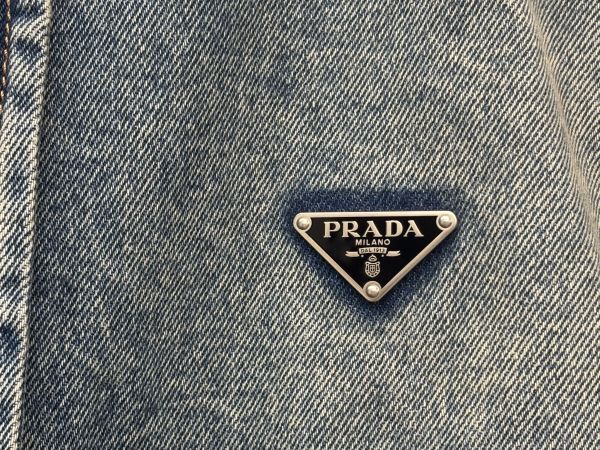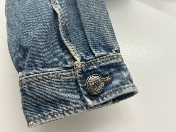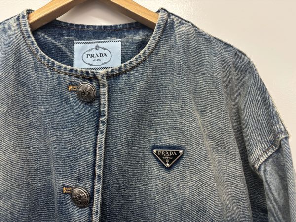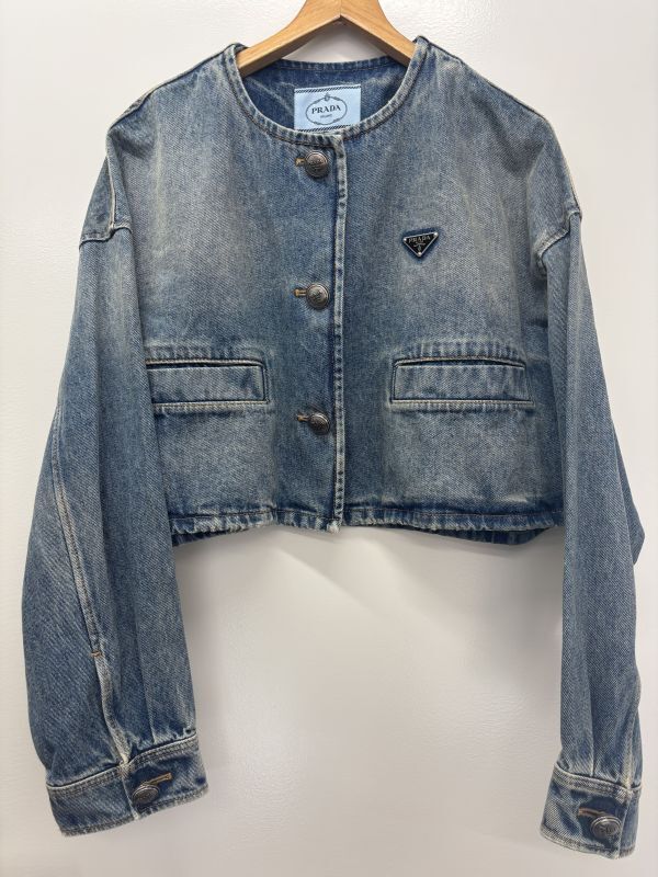 【大黒屋】 PRADA デニムブルゾンジャケット サイズ40 未使用品 定価341,000円 現行正規品 三角プレート ショート丈 GFB297 12O0