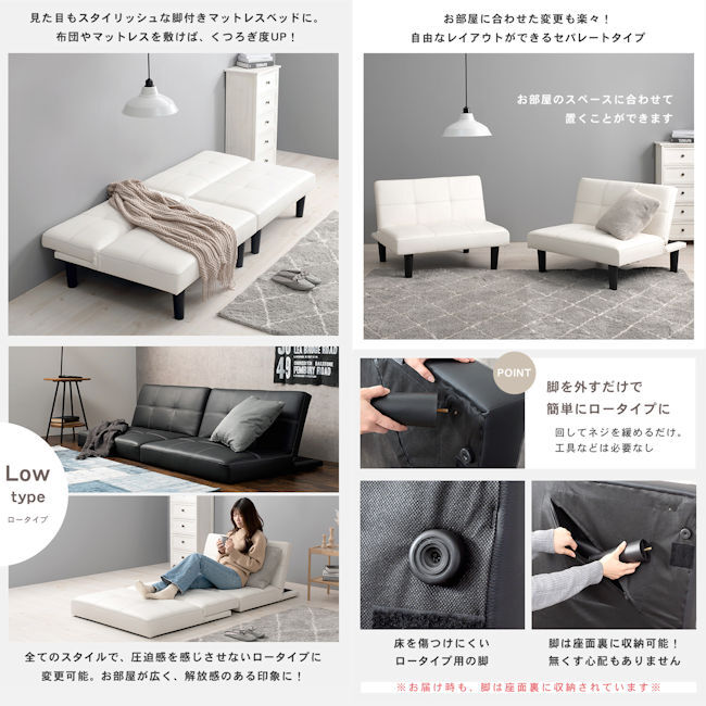 分割式マルチソファベッド3人掛け PVCレザー 3段階リクライニング カウチソファ ローソファー リクライニングソファ(993)
