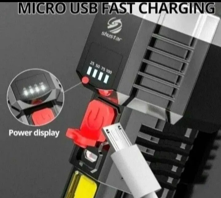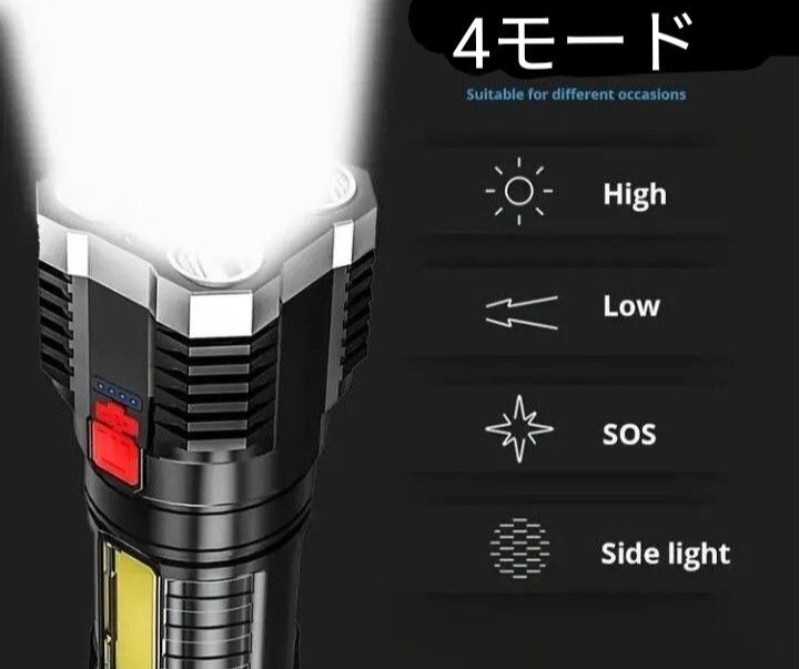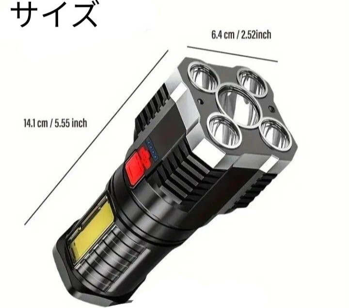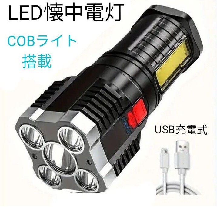LED 懐中電灯 高輝度 COB搭載 USB充電式 防水機能 ブラック