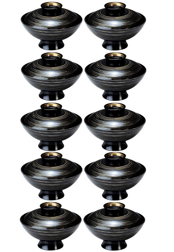 ☆業務用漆器耐熱小槌吸物椀かすり刷毛目4寸内黒(約径129XH84mm)10個