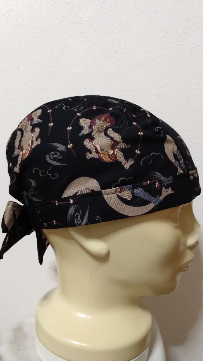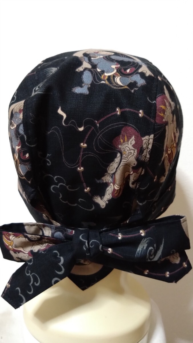 短★バンダナキャップ★ハンドメイド 和柄 風神雷神 黒