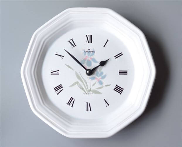 ドイツ製 Junghans 白磁にきれいな花の絵付け 壁時計 壁掛け セラミッククロック ユンハンス ヴィンテージ アンティーク ic0073