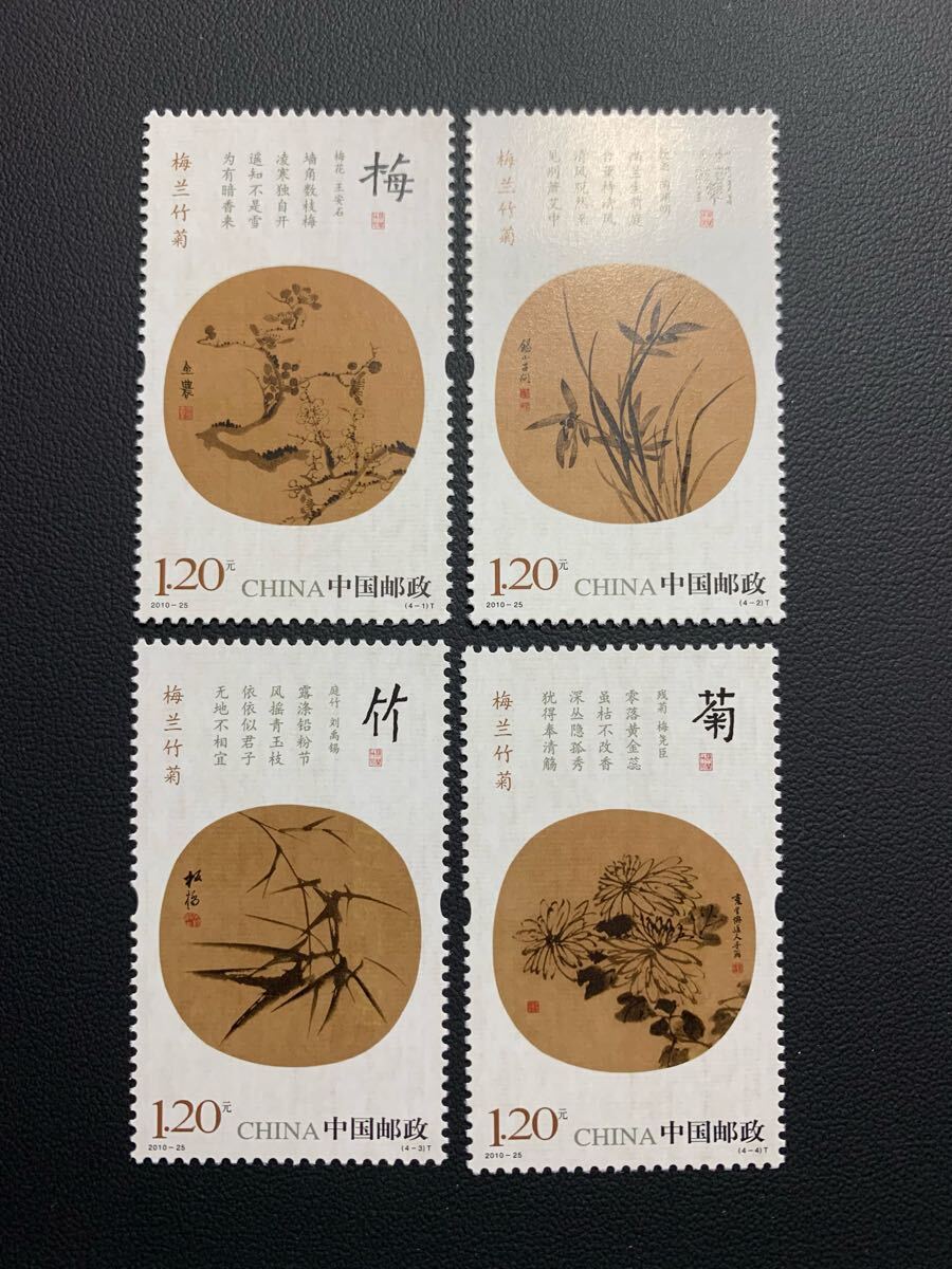 中国切手  未使用  2010年  2010ー25/梅蘭竹菊/4種完/NH