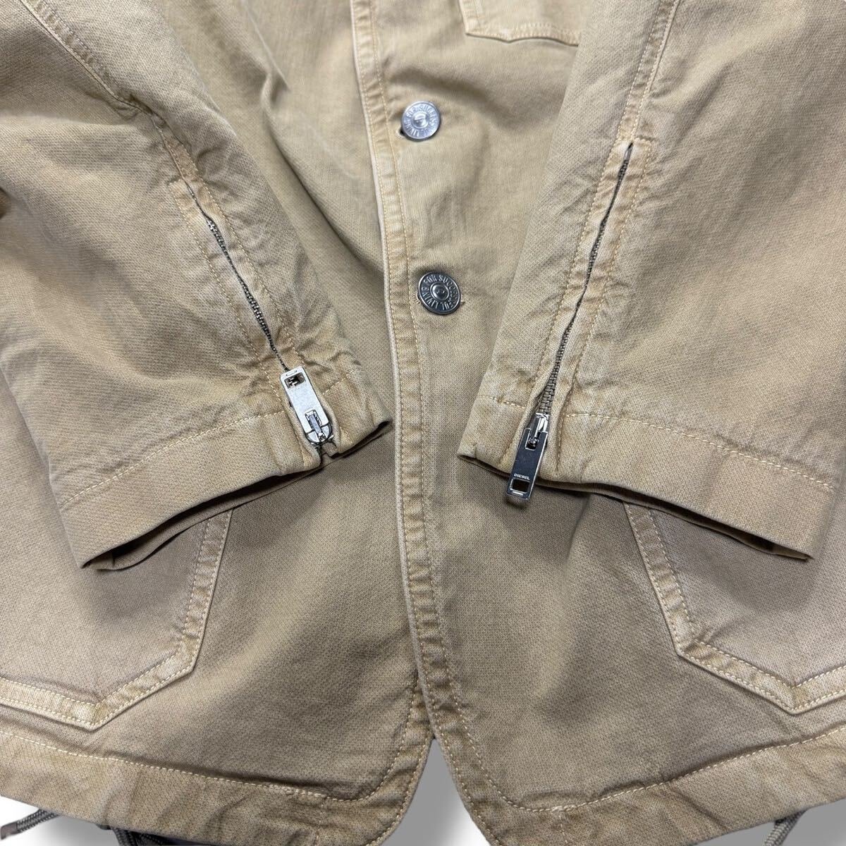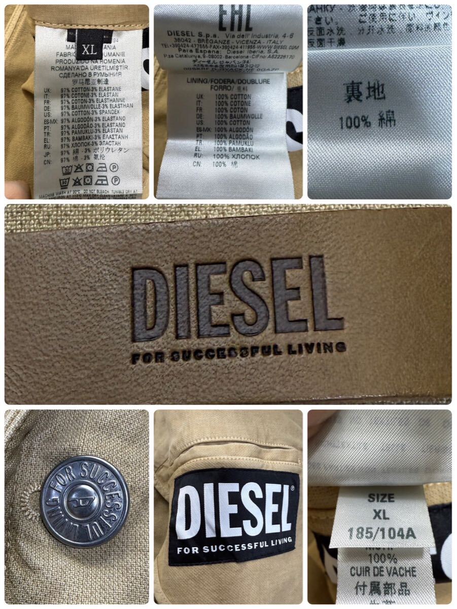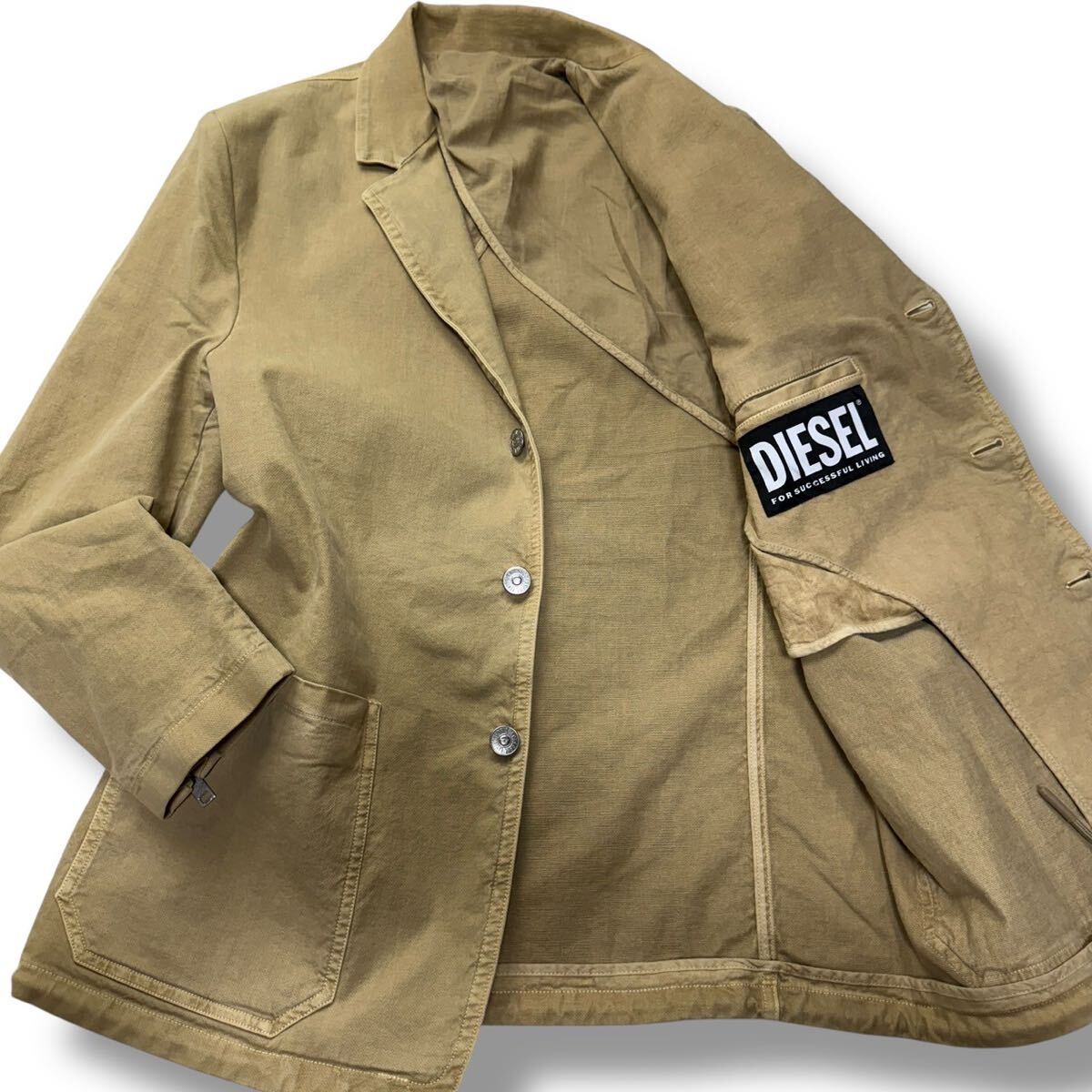 644 未使用級/XLサイズ●現行タグ DIESEL ディーゼル デニム テーラードジャケット ブレザー Gジャン ベージュ ロゴ銀ボタン レザーパッチ
