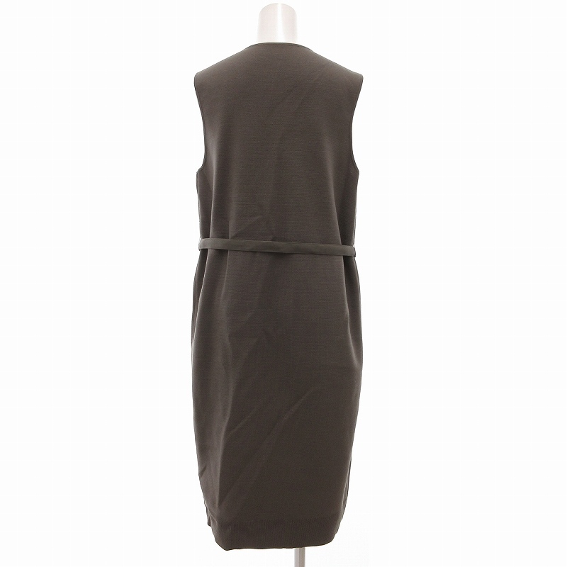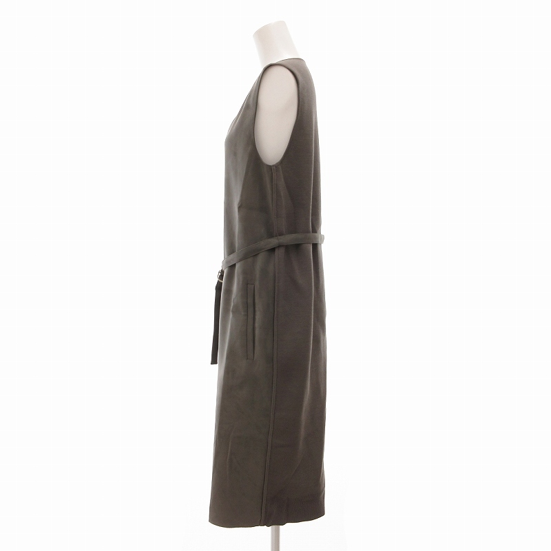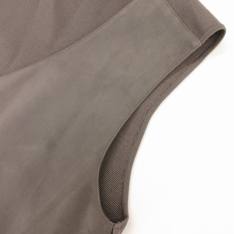 トゥモローランド TOMORROWLAND ロングベスト フェイクスエードレザー ニット切替 ダブルジップ ベルト付き 36 グレー /UO レディース