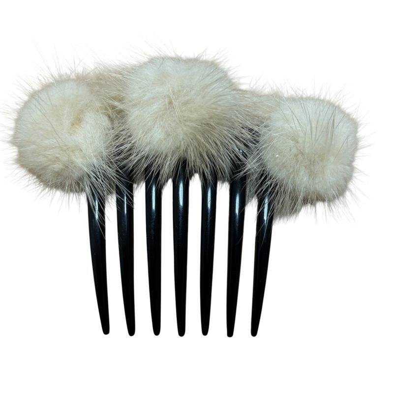 ふわふわのボンボンファーが可愛らしい、まとめ髪用のヘアコームです。
