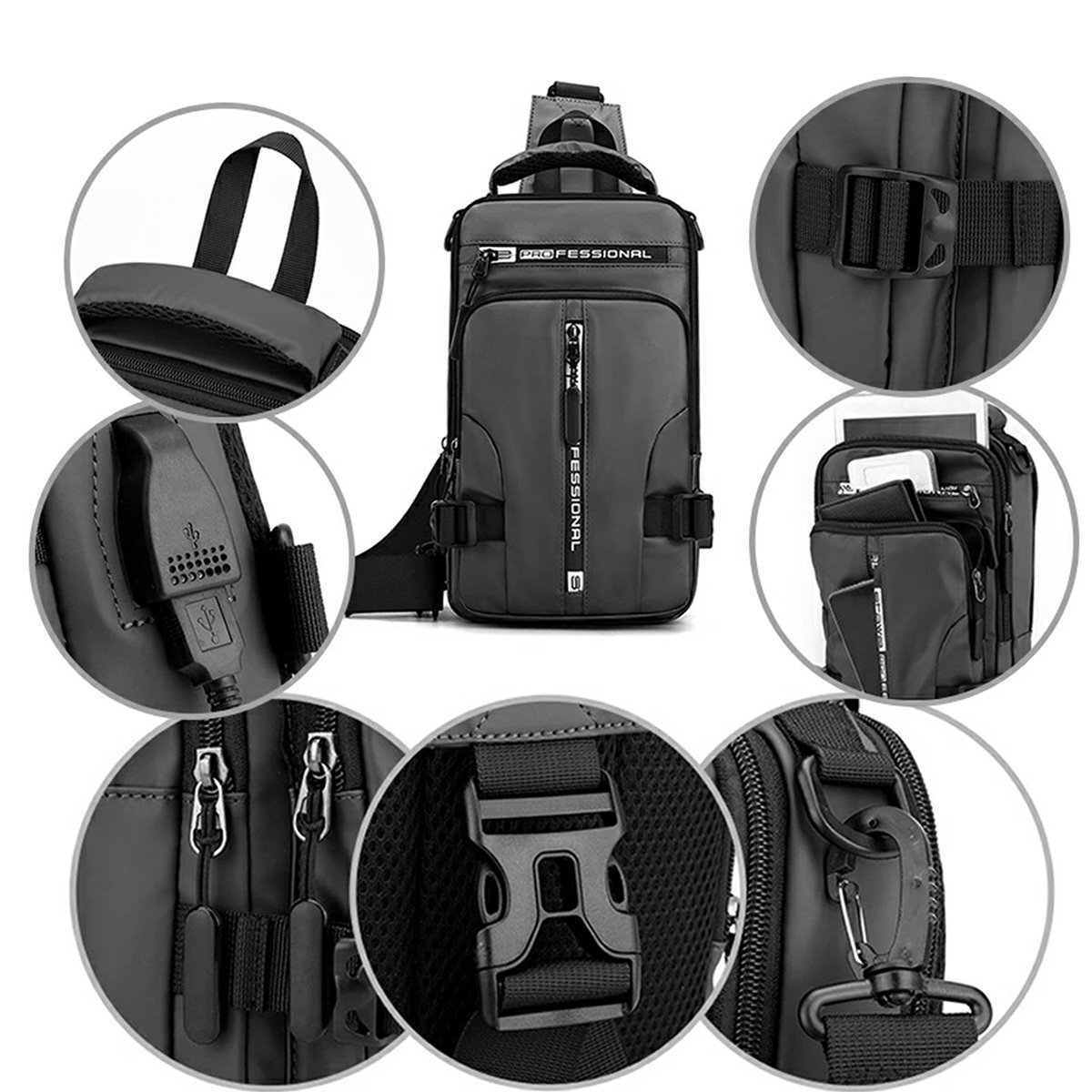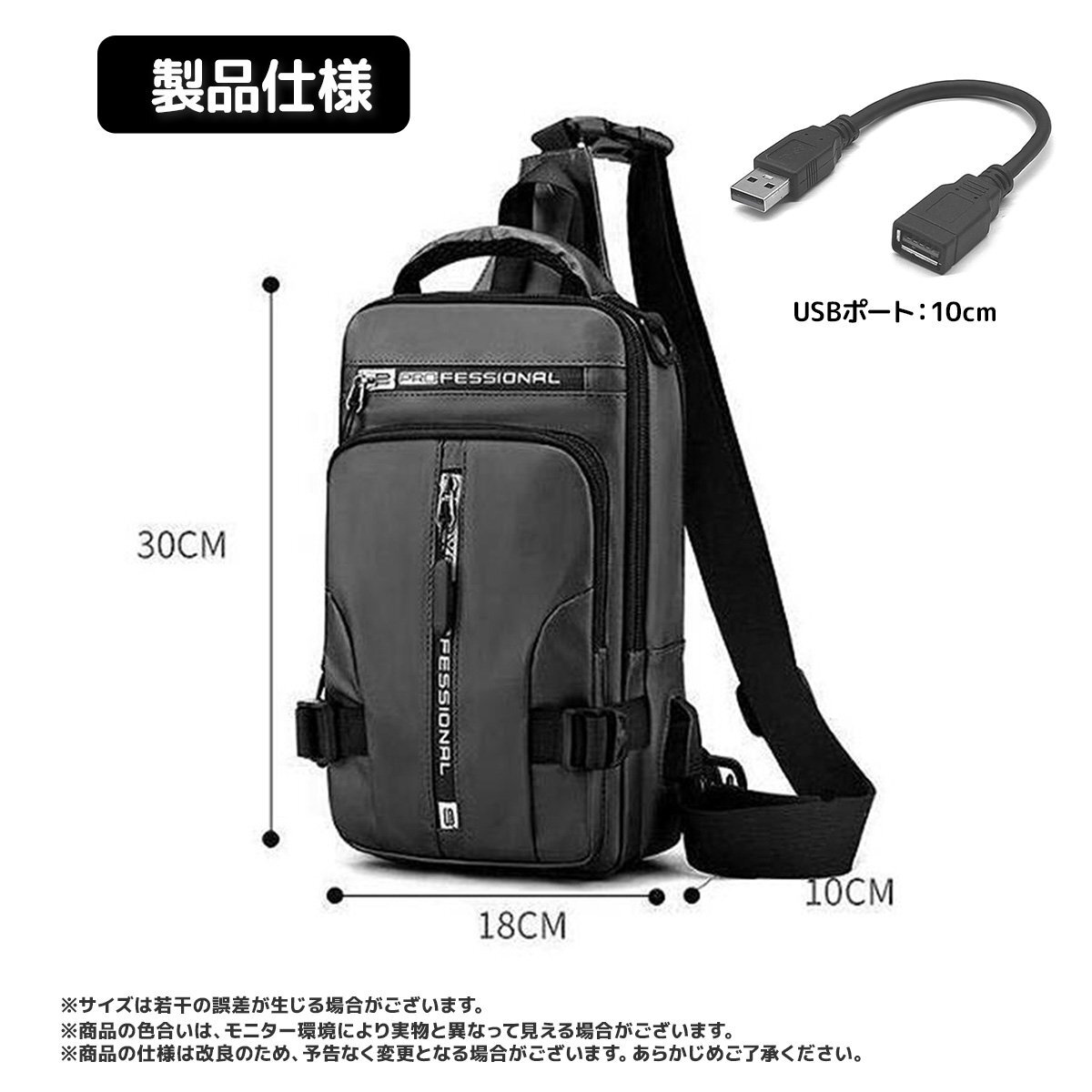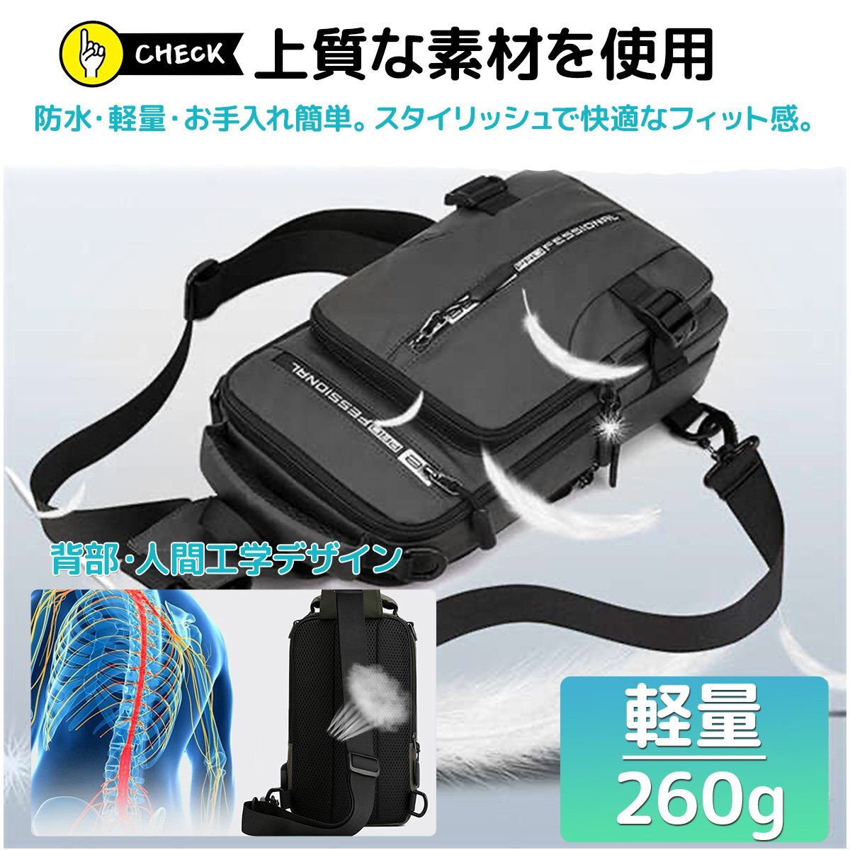 【全国一律送料無料】ボディバッグ メンズ USBポート付き 大容量 軽量 ショルダーバッグ 多機能 ミニiPad収納可 通気 左右肩対応 通勤 通学