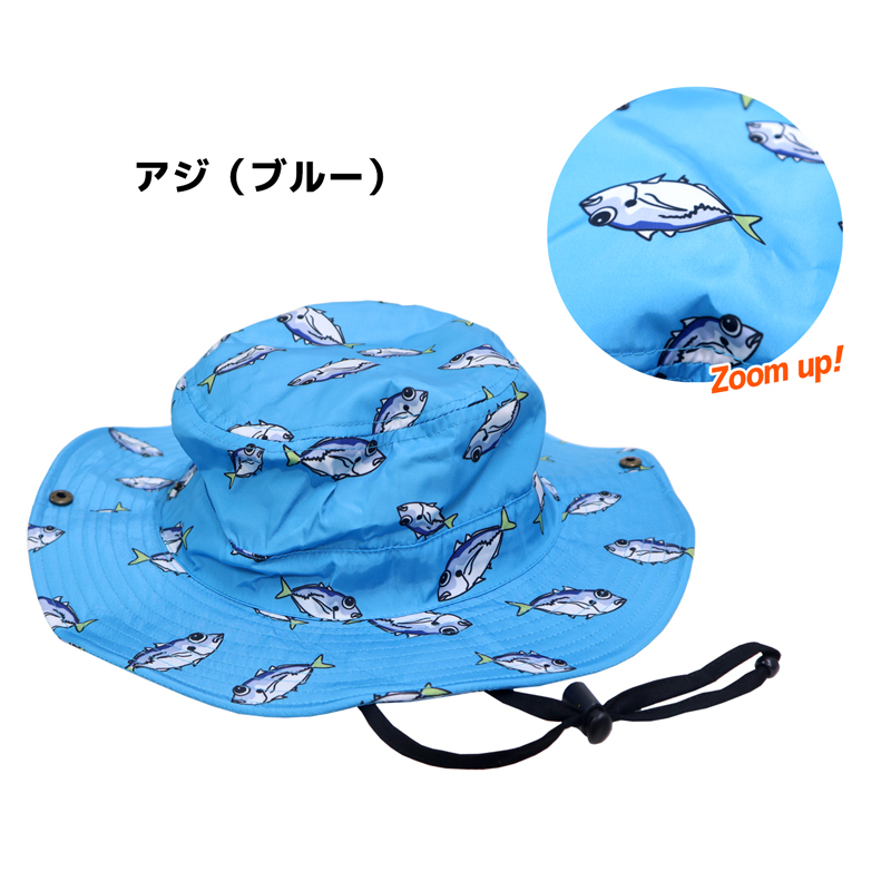 | 商品名 | ギョギョハット アジ(アクアブルー) 釣り フィッシング レジャーハット 撥水加工 頭囲調節ゴム付 58cmまで KOHINATA | ||||||||||