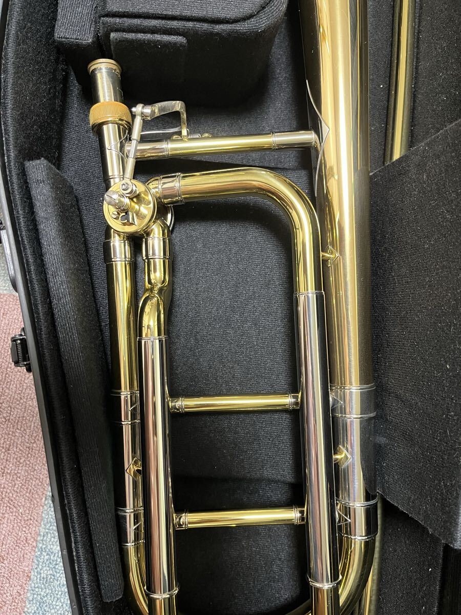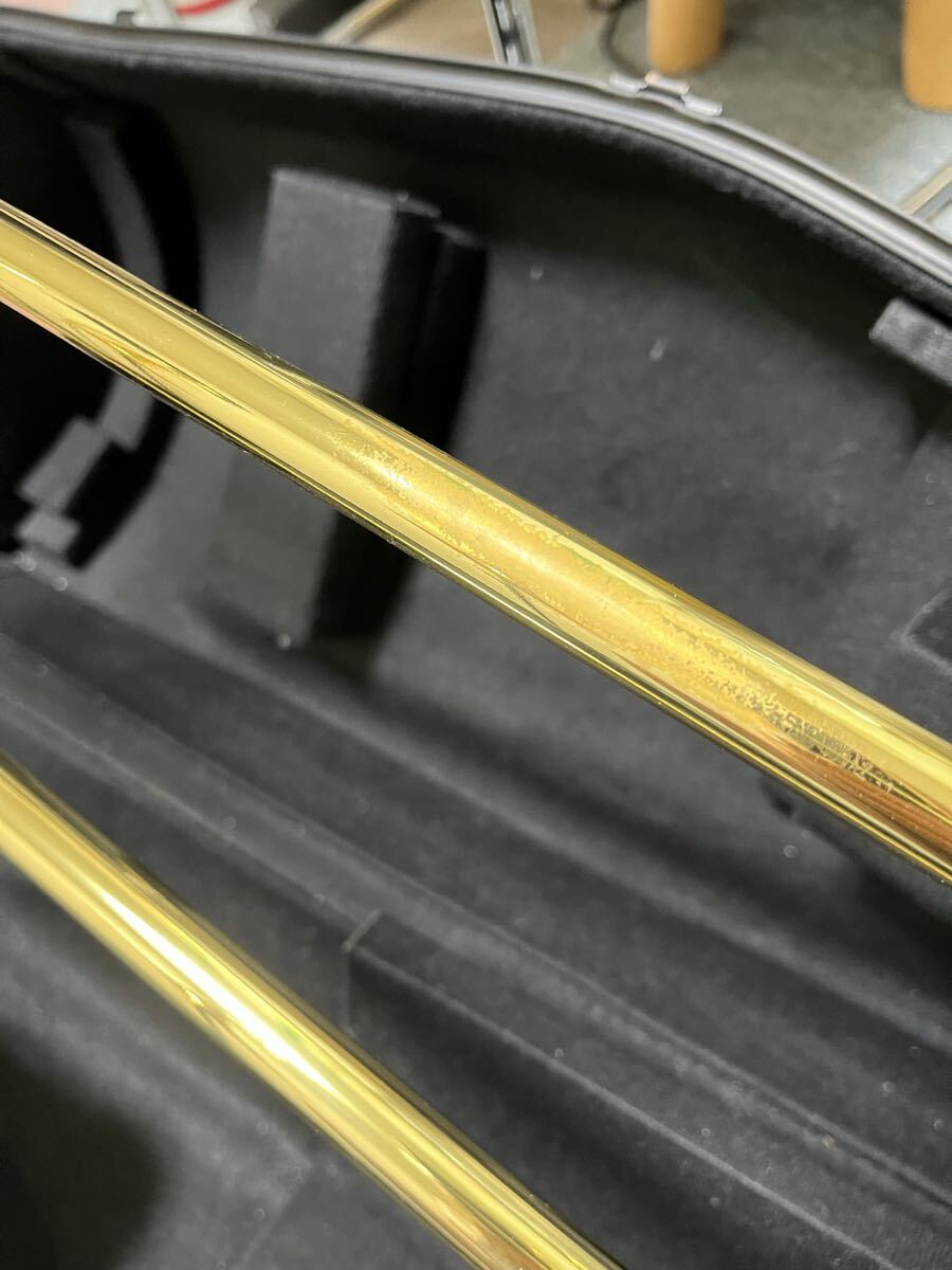 バック50Bオープンラップゴールドブラス(赤ベル)グリップ周り、ベルの先端にラッカーの剥がれあり。「野中貿易メンテナンス」にてロータリー内部、スライド調整しております。全体的には状態は良い方です。ケースはDACのオリジナルケースをお付けします。ケースに若干のかすり傷あります。マウスピースは付属致しません。あくまで中古ですので完璧を求める方は入札ご遠慮ください。