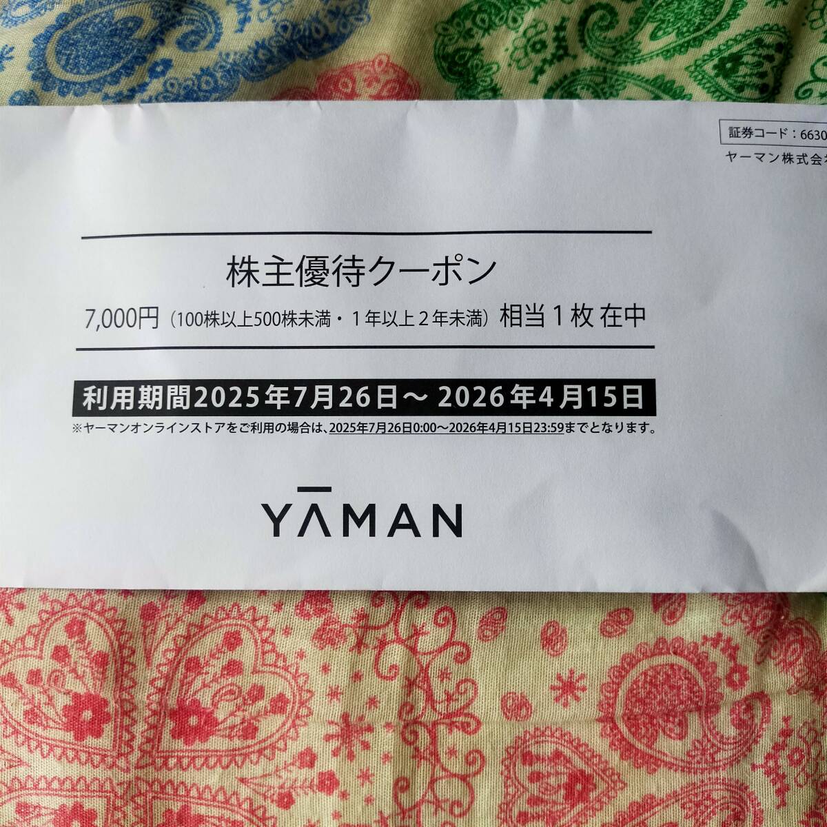 【最新】ヤーマン株主優待 7000円分となりますのでよろしくお願いします。 期限 26年4月15日