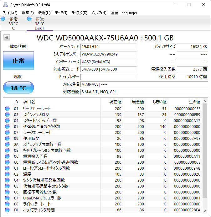 | ★3.5インチ SATA 500GB WD WD5000AAKX 10910時間 中古品★ | |||