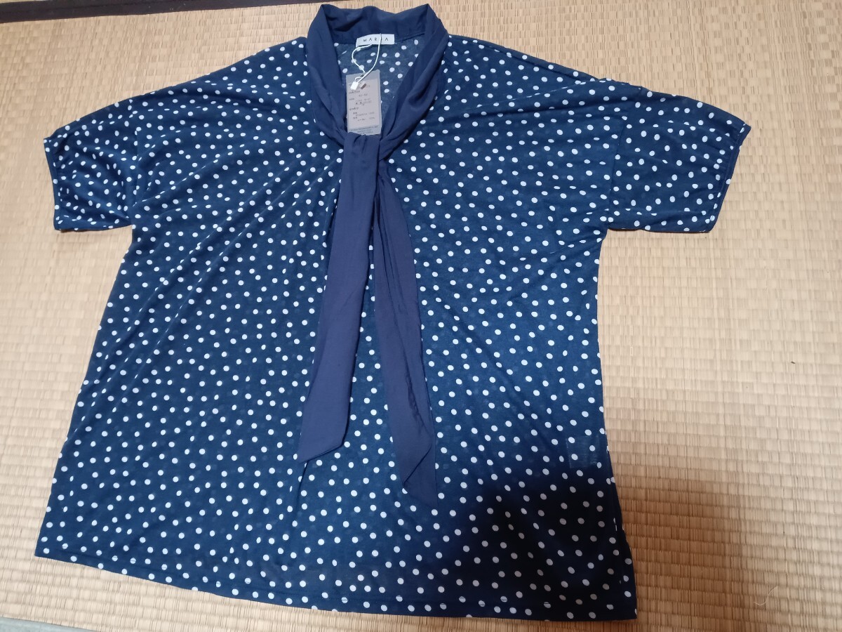 未使用品☆タグ付き MARNA マーナ 水玉ブラウス 半袖 M 濃紺色×白  身幅60㎝のゆったりサイズ