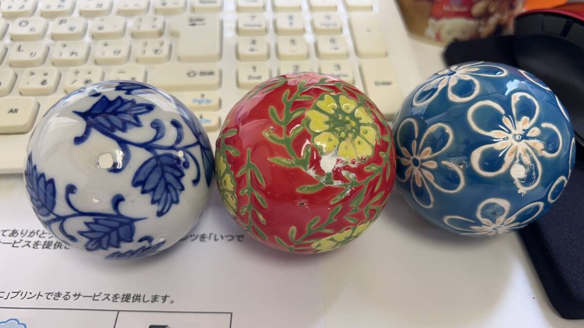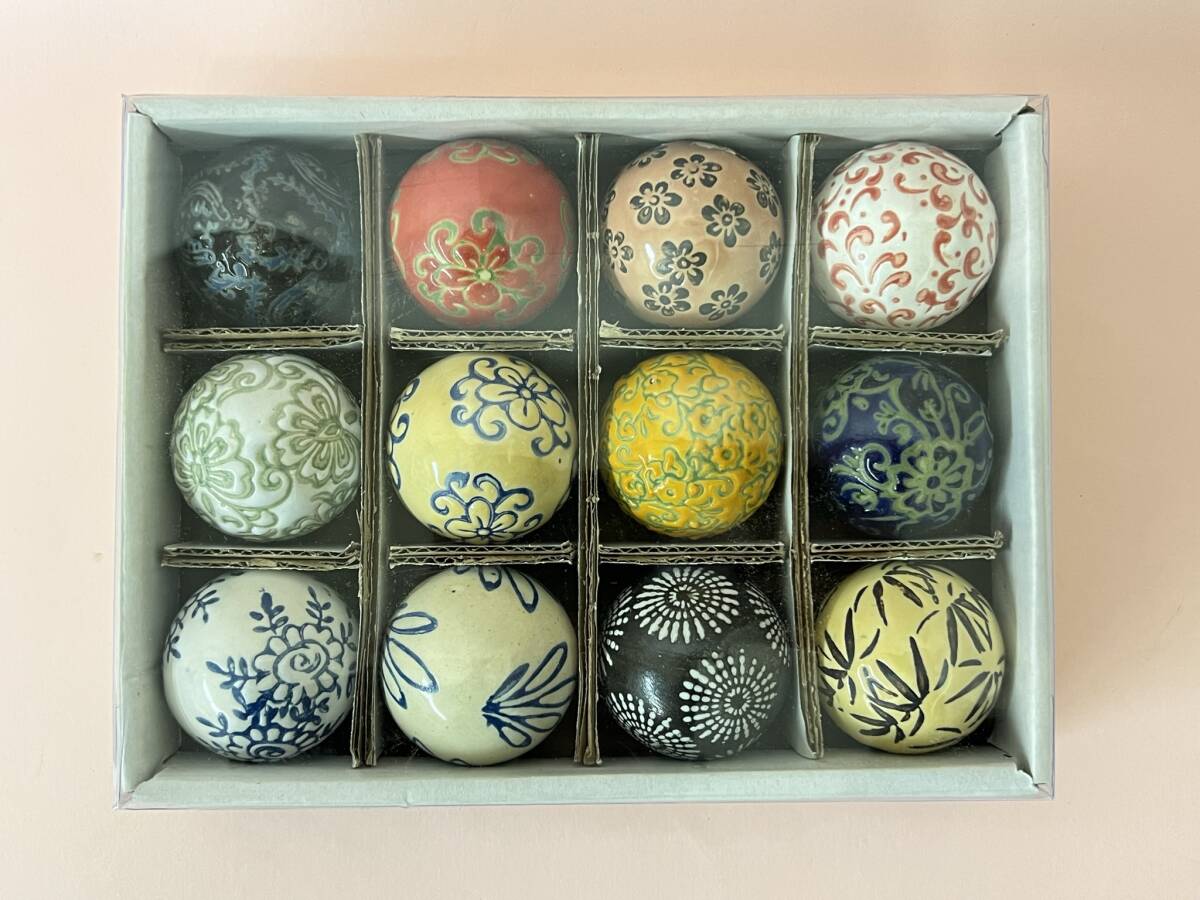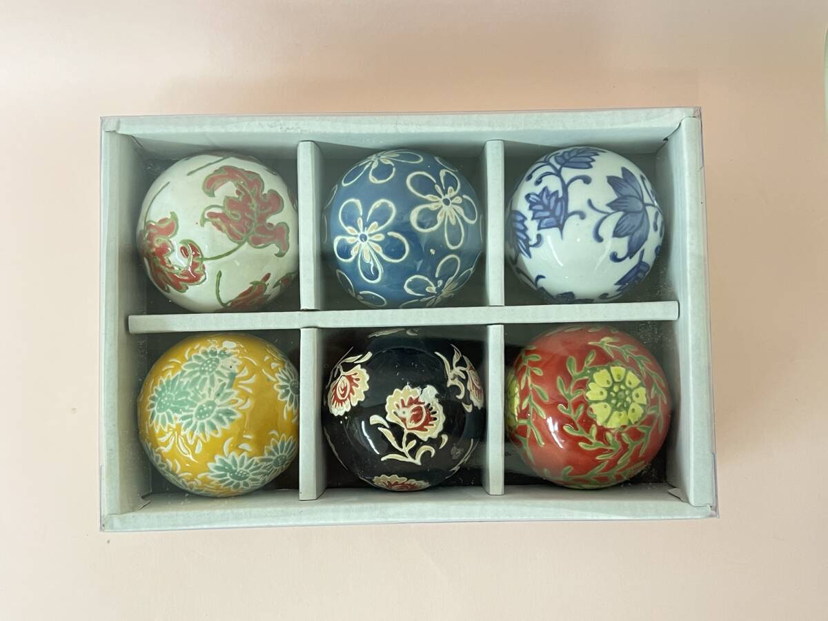 メダカの隠れ家 【浮き玉6個セット 大 彩色】 浮玉 五彩 粉彩 陶器 金魚鉢 睡蓮鉢 浮球 池 陶芸 陶磁器 工芸品