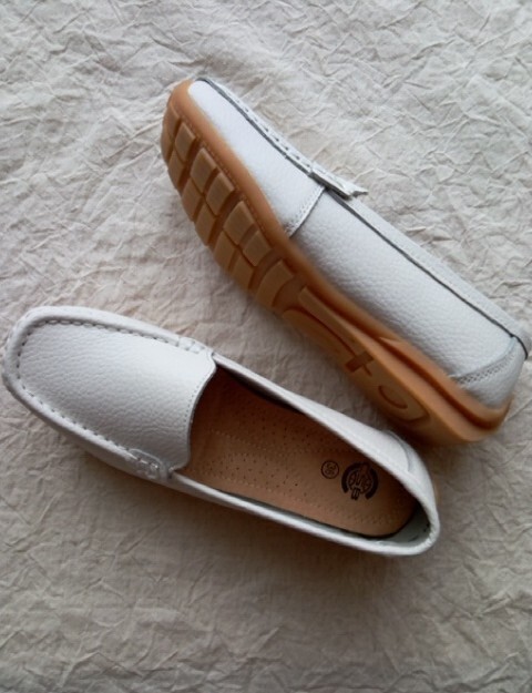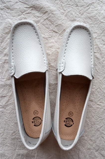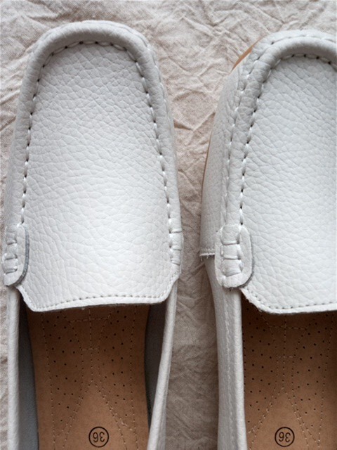 訳あり 新品 23cm レディース 本革 ドライビングシューズ ローファー スリッポン ホワイト 541No.0727