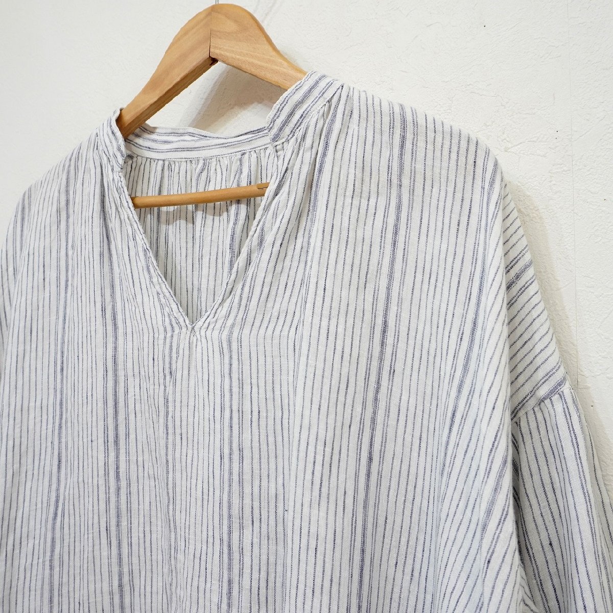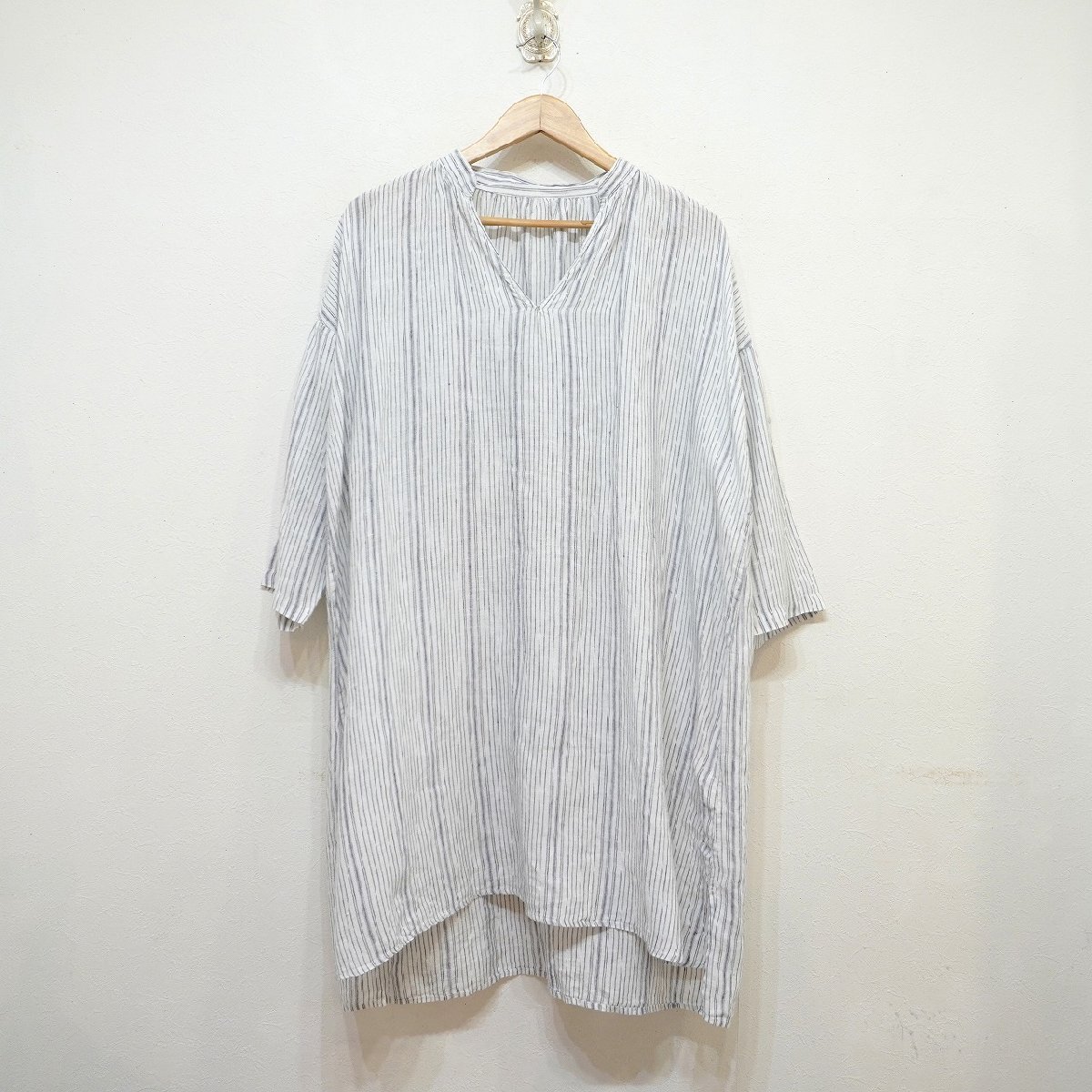 nest robe 日本製 リネン 麻100 ストライプワンピース チュニック 01111-1035 ネストローブ J7-184