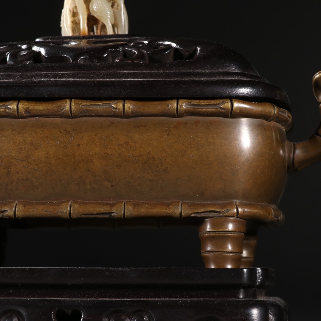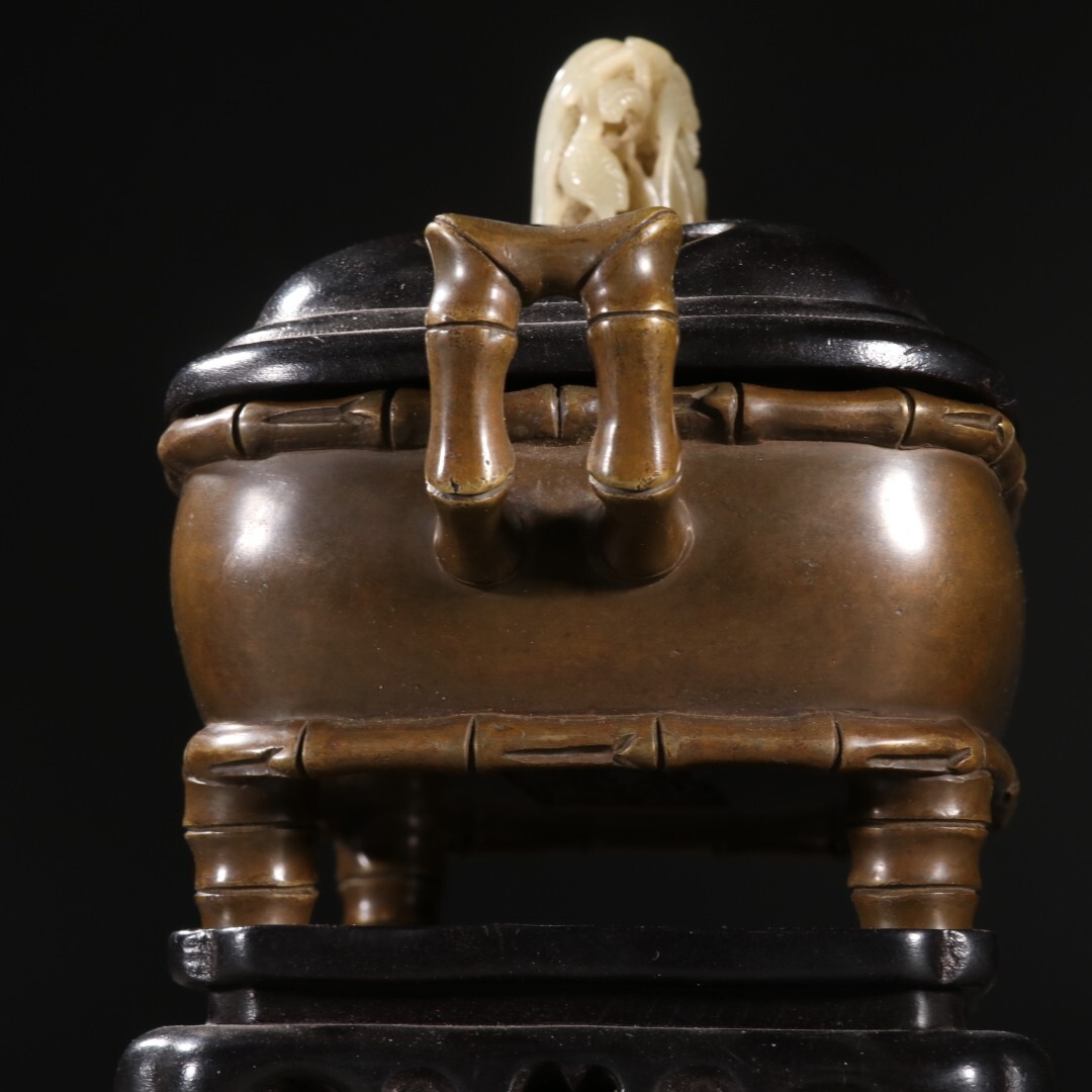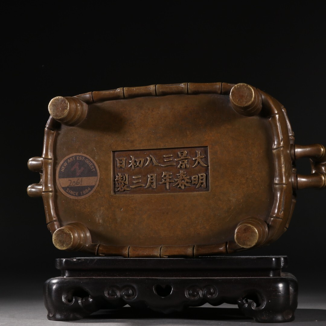 【瓏】古銅鏨刻彫 竹節紋 香薰炉 大明景泰三年八月出三日製 銅器 古美術 骨董品 香道具 蔵出