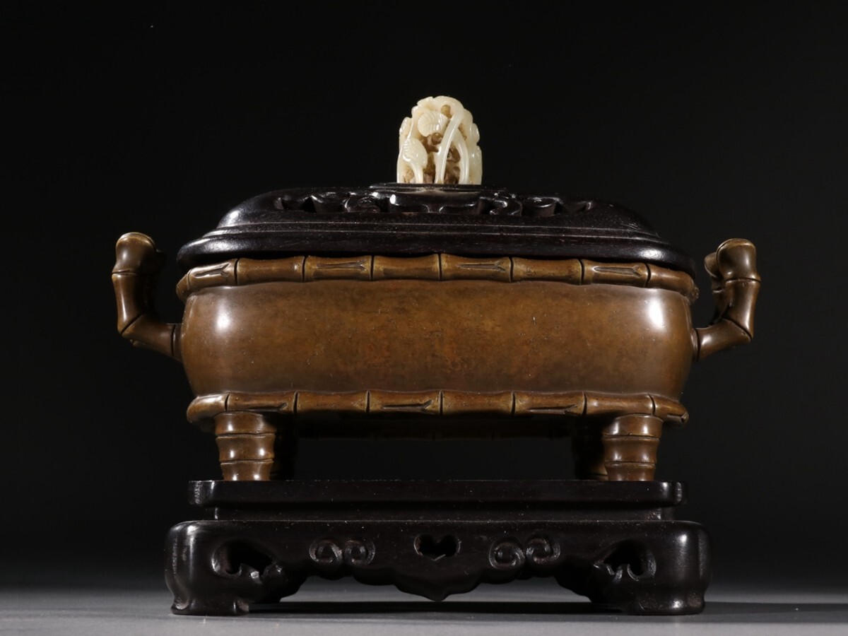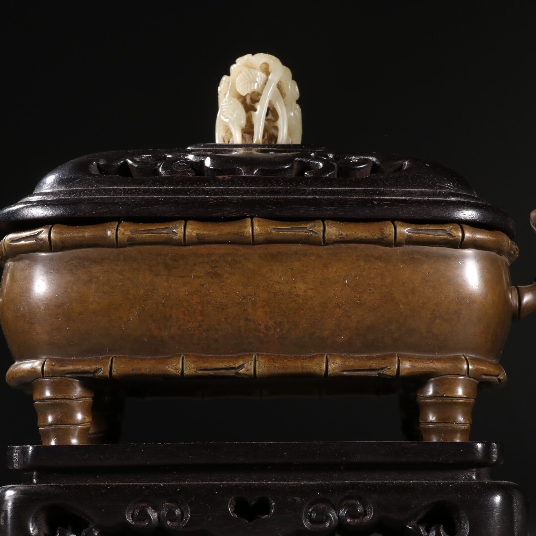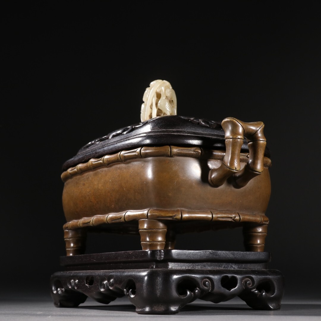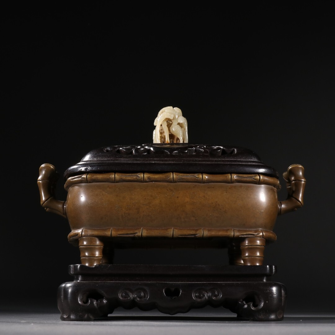 【瓏】古銅鏨刻彫 竹節紋 香薰炉 大明景泰三年八月出三日製 銅器 古美術 骨董品 香道具 蔵出