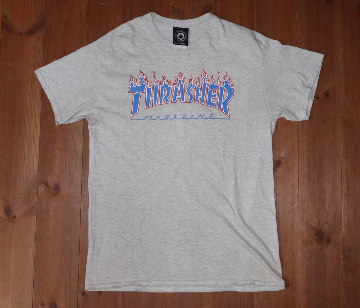 THRASHER スラッシャー 霜降り フレイムスロゴ Tシャツ M / GILDAN ギルダン フレイムス ファイヤーパターン グレー SK8