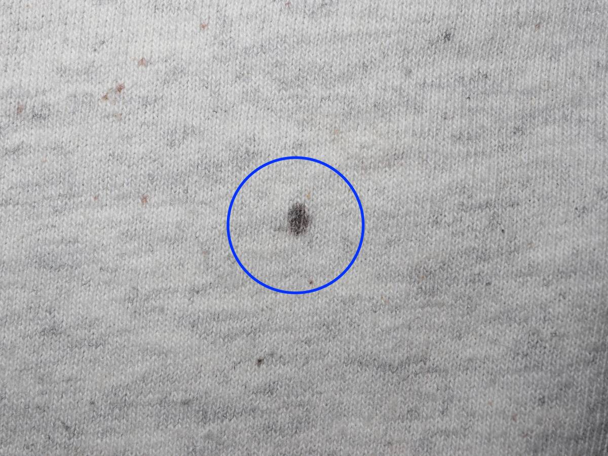正面腹部や背面左袖口に汚れがあります。(画像参照)