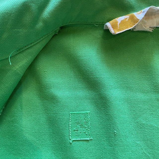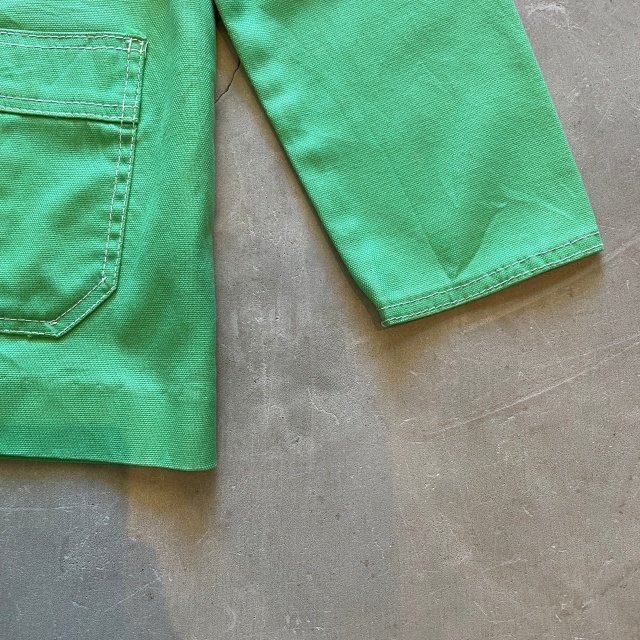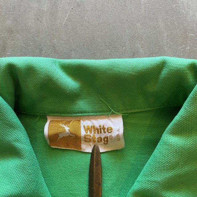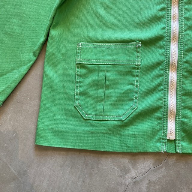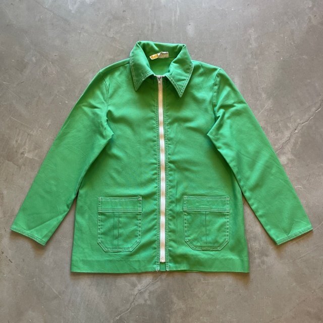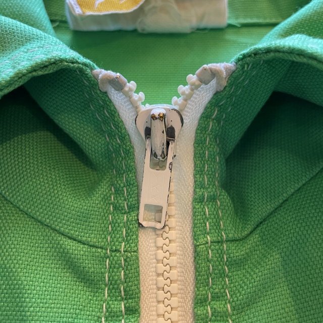 ★商品状態★ ・着用感があり、背面上部に小穴のダメージリペアが見られます。 ・古着慣れされている方でしたら問題無く着用していただける程度かと思います。 ・YKKジップ ★素材★ おそらく COTTON/POLYESTER ★配色★ 黄緑が近いかと思います。 ★サイズ表記★ 不明 レディースもしくはメンズS程度 ・実寸を参考にして下さい。 ★実寸サイズ★ 肩幅41㎝ 身幅50㎝(脇下~脇下) 着丈68㎝(襟下~裾) 袖丈57㎝(肩~袖先) ・平置きにての採寸となります。 ・若干の誤差はご了承ください。 |