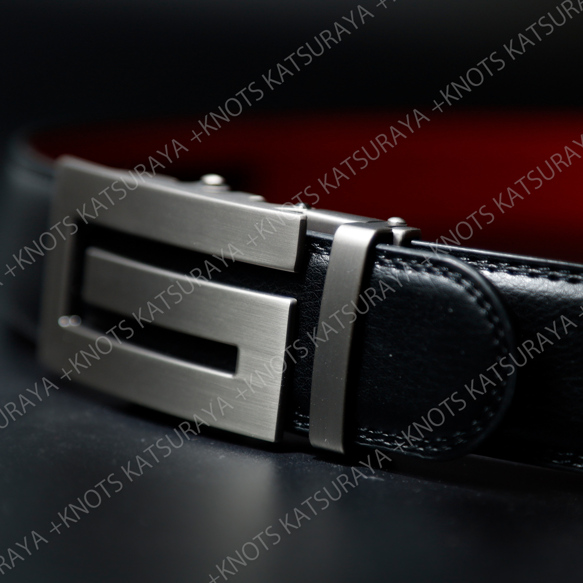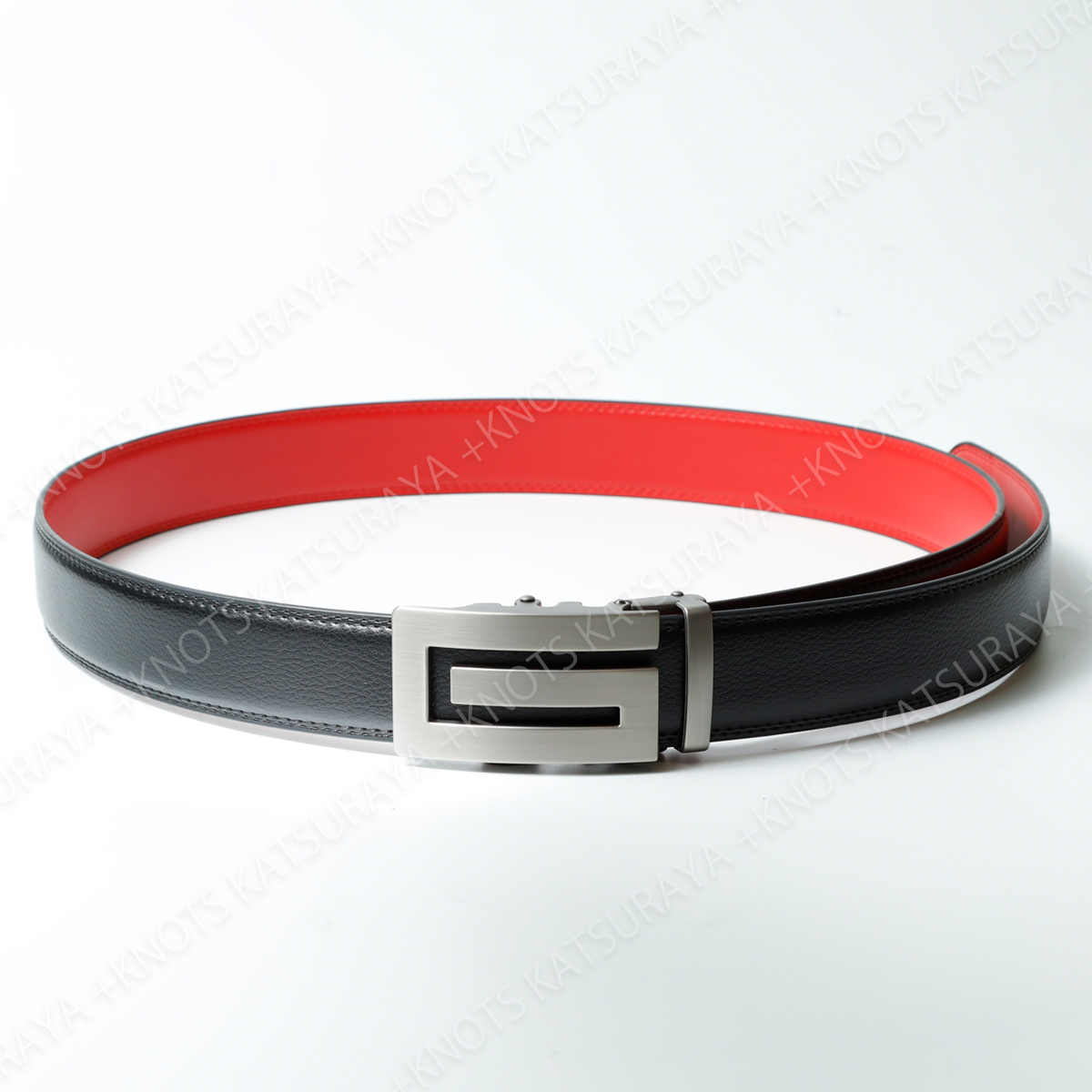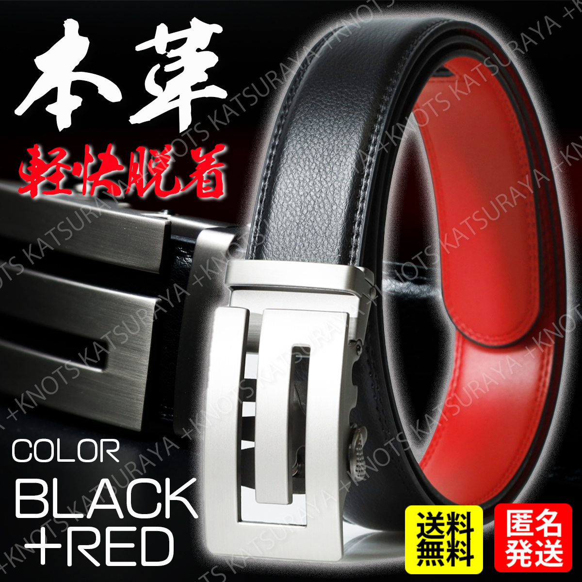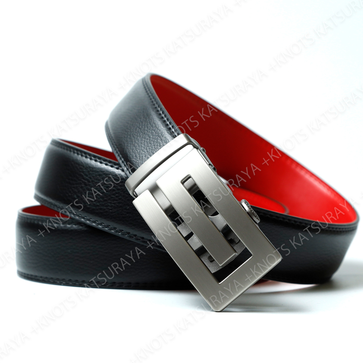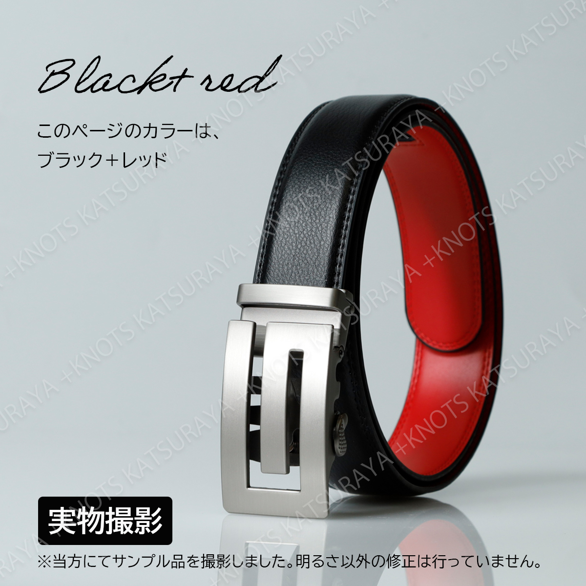 本革 オートロック メンズ ベルト★ブラック+レッド★穴無し自動 レザー カジュアル ジーンズ デニム 紳士通勤 ビジネス ゴルフ スーツa330