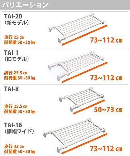 送料無料! つっぱり棚 ホワイト 耐荷重:50-30kg 取付寸法50~73cm TAI-8 平安伸銅工業