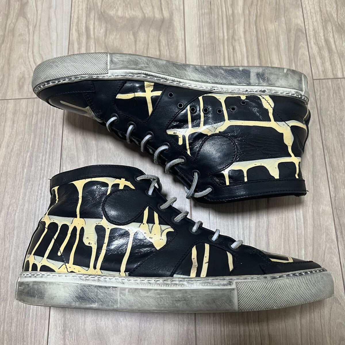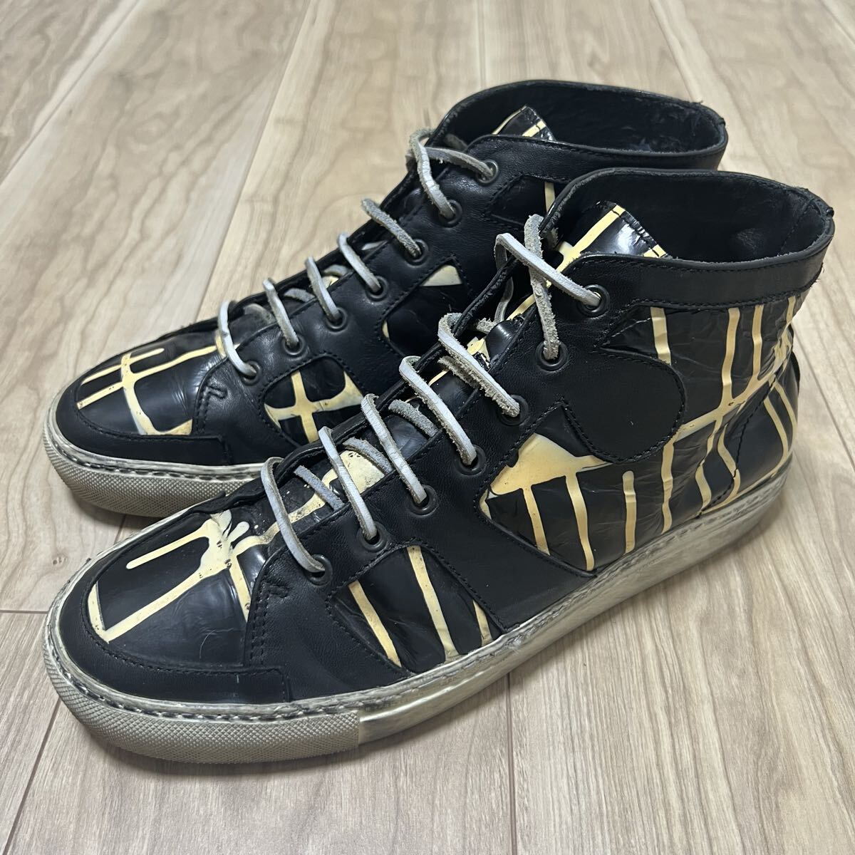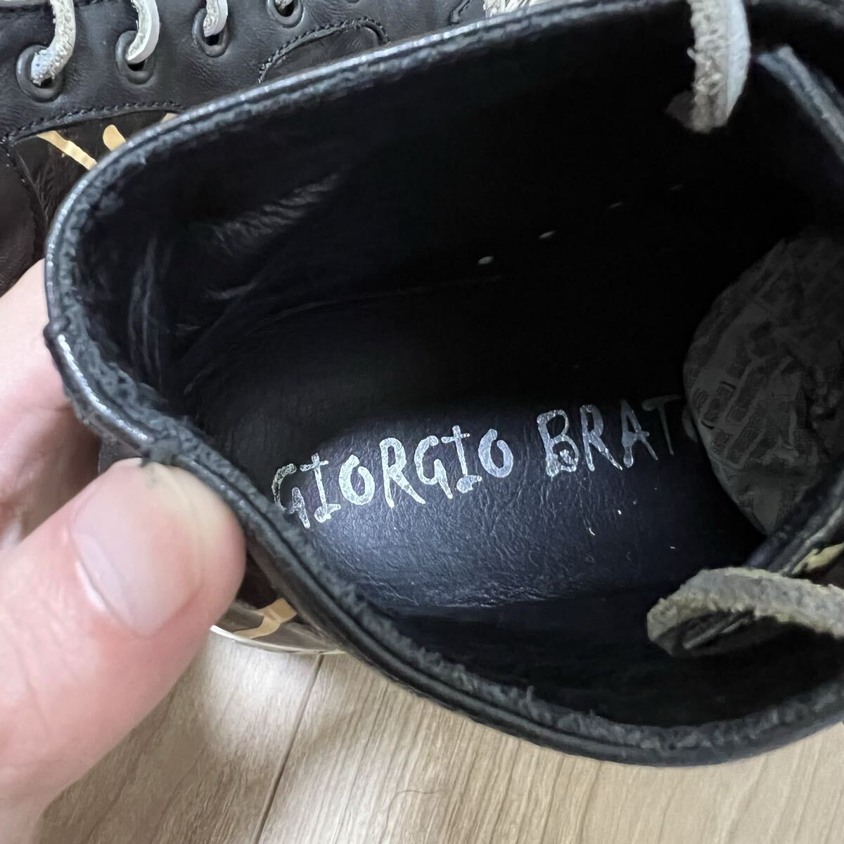★最高級★GIORGIO BRATO ジョルジオブラット スニーカー USED加工 黒 ブラック 革靴 レザー メンズ サイズ41(25.5cm-26cm程度) R-7878