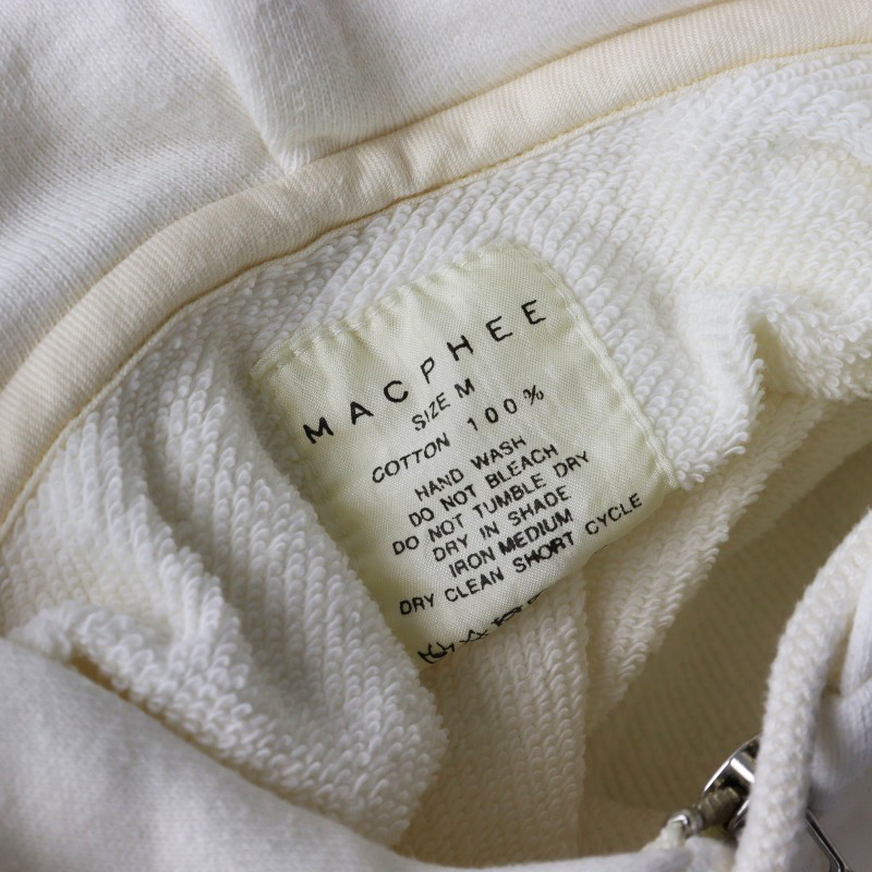 マカフィー MACPHEE コットンジャージー ジップアップパーカー M/オフホワイト 羽織り フーディ フード【2400014524970】