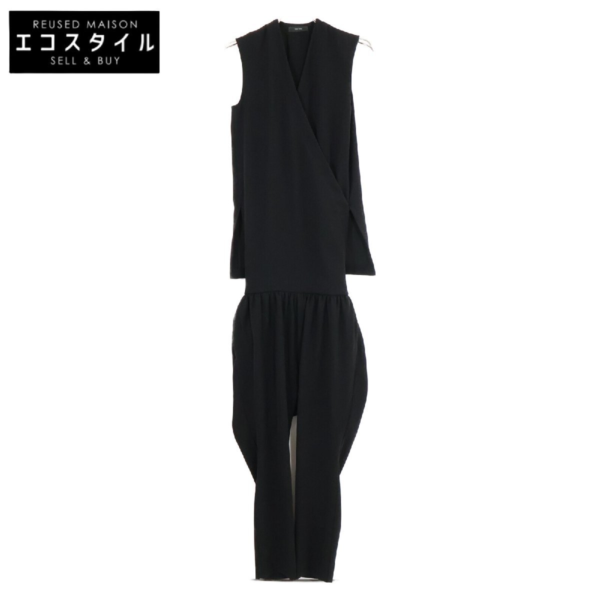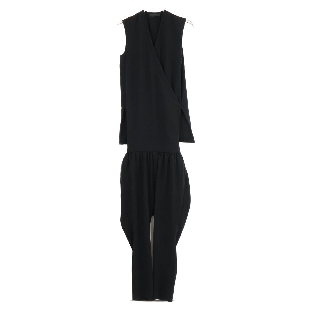 美品/ YOKOCHAN ヨーコチャン YCP-421-102 ノースリーブ カシュクール オールインワン 36 ブラック レディース